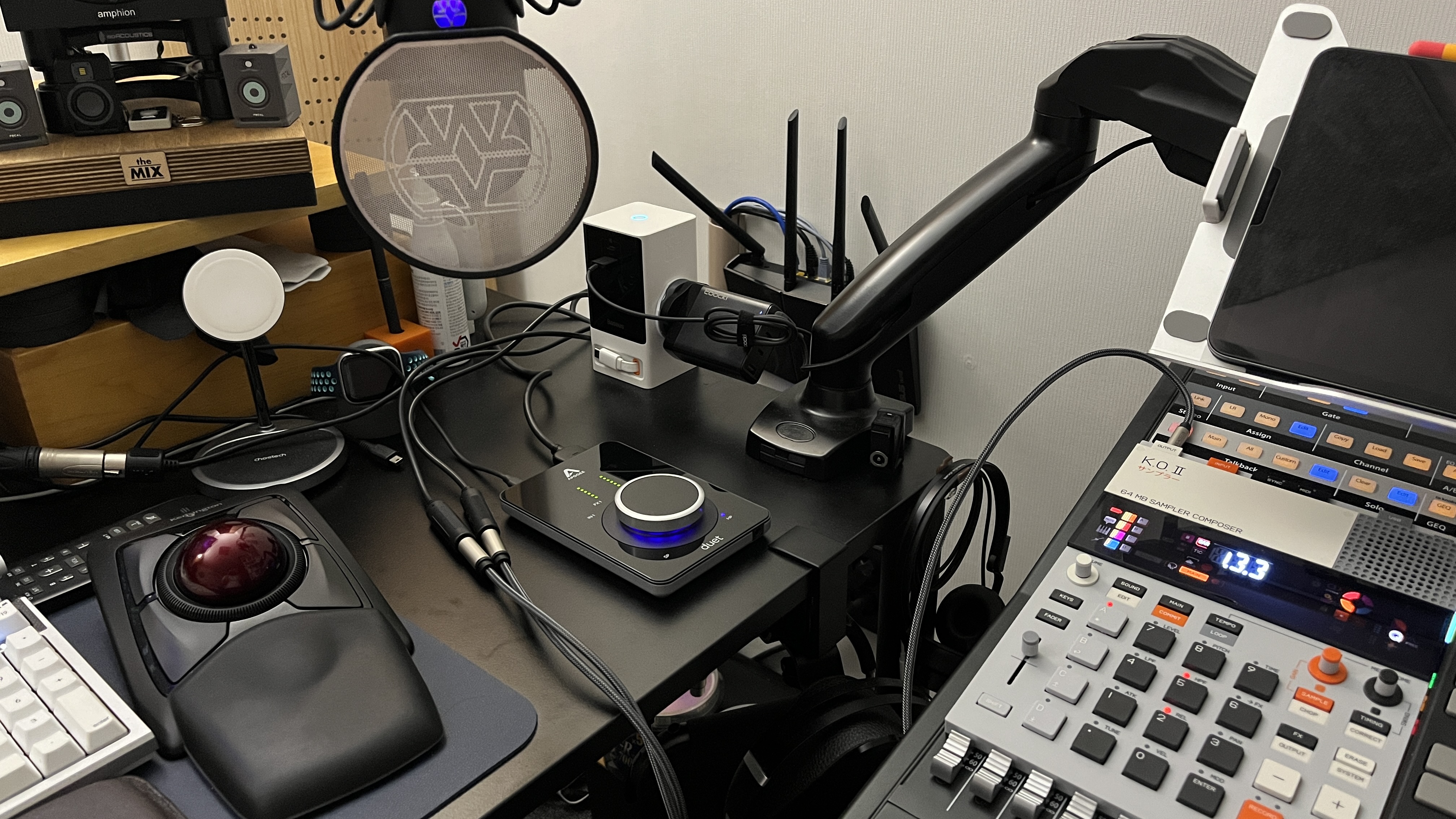 새로운 작업실에 이사한 김에, 새롭게 간이 연결 시스템을 구성해 보았다. 밑에 있었던 믹서는 옆으로 옮겨져서 무엇이든 꽂을 수 있게 따로 빼놨고, 마우스 옆에 테스트할 제품들을 따로 올려놓아서 테스트하기 편리하게 만들었다. 영광스러운 첫 주자는 Apogee Duet이 되었다. 세팅에서 조금 힘을 준 부분이라 하면, 브레이크아웃 케이블이 최대한 눈에 보이지 않게 정리하는 일이었다. 물론 저렇게 보여도 난잡해 보이지만 최대한 노이즈 없이 세팅했다.