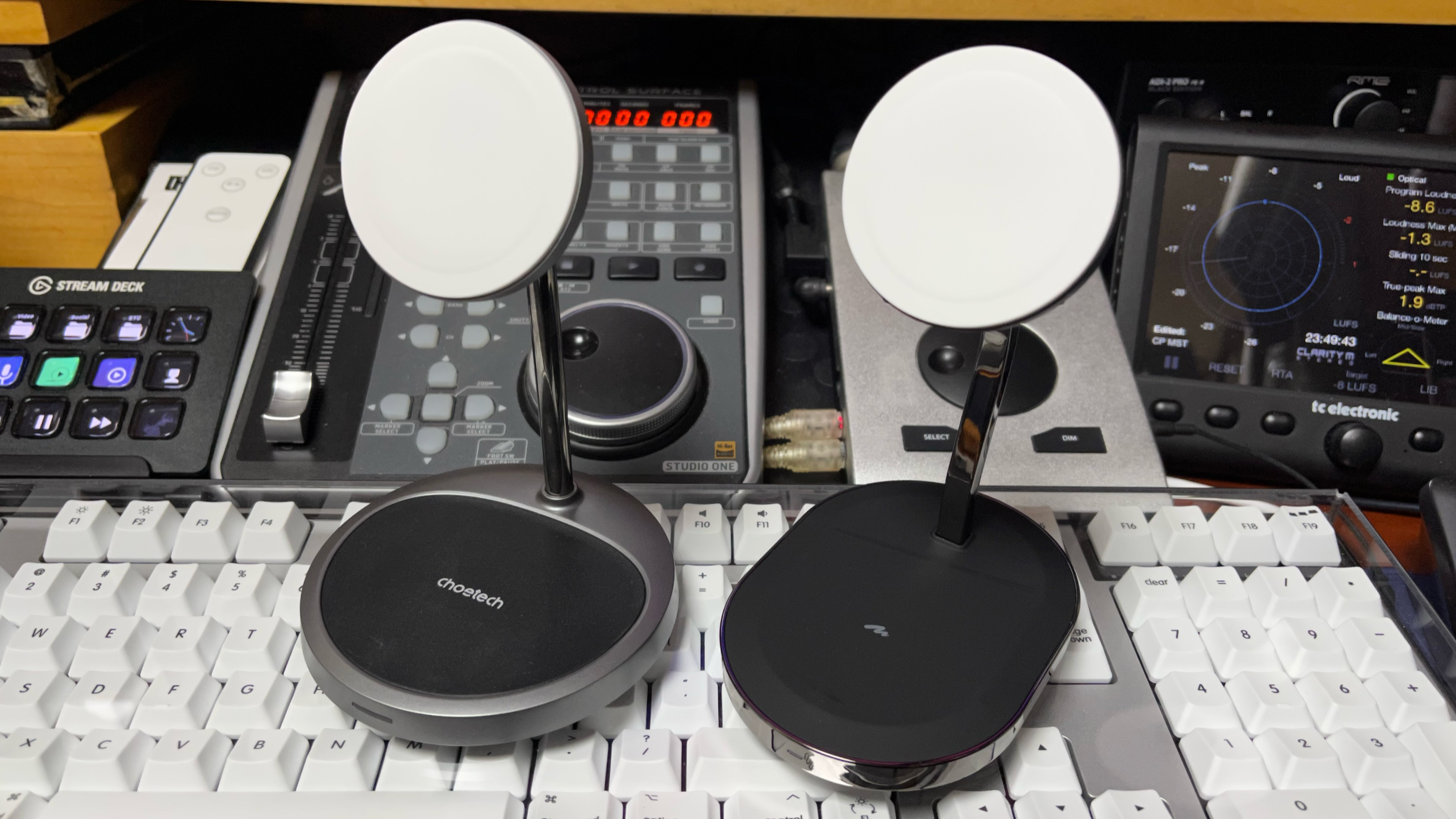 필자가 또 한 번 큰 차이점을 크게 느낀 부분은 바로 각도 조절이었다. T575-MFM 및 MC210은 맥세이프 모듈의 각도 조절이 가능한 모델로 사용자가 원하는 만큼 모듈을 기울여서 사용할 수 있다. 그러나, 두 제품은 설계된 기본 각도 값이 다르다. 위의 사진은 스탠드 방향으로 최대한 가깝게 붙인 각도를 촬영한 사진인데, 초텍의 T575-MFM은 상대적으로 급격한 경사를 가지고 있는 반면 아트뮤 MC210는 완만한 경사를 가지고 있다. 스탠드와 거의 수직으로 당겨 아이폰이 수직으로 떠 있는 것 같은 인상을 원하는 소비자들에겐 초텍의 제품이 가장 목적과 맞을 듯하다.