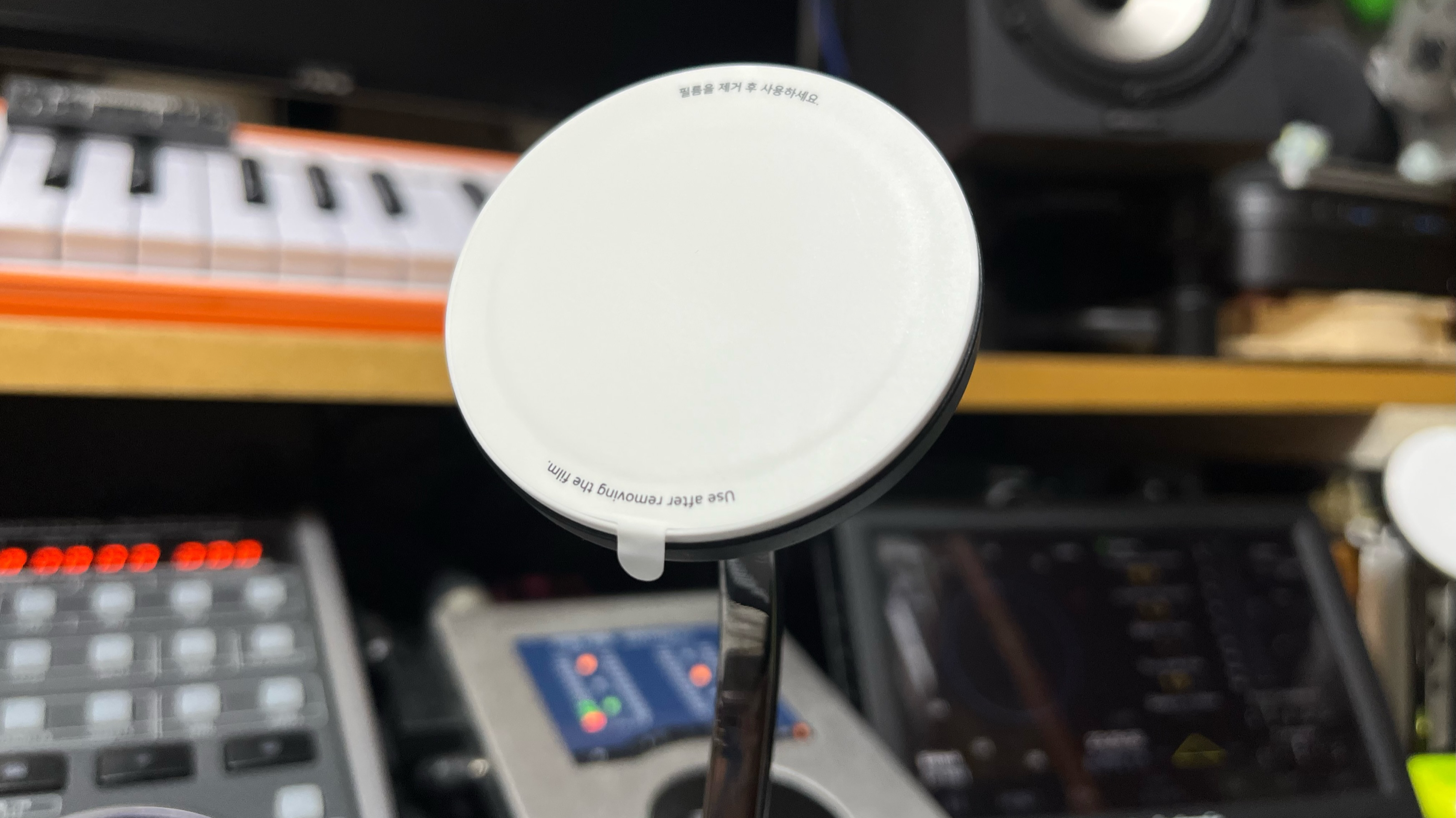 하단부에는 5W 출력을 가진 충전 모듈이 적용되어 있는데, 설명에 따르면 자석으로 맥세이프 자석 모양의 가이드가 내장되어 있어 이를 지원하는 핸드폰이나 무선 이어폰을 근처에만 놓아도 자동으로 충전부를 정렬해준다. 애플의 맥세이프 가이드라인을 잘 이용한 또 하나의 사례가 아닐까. 테두리 마감은 유광 메탈로 마감되어 고급스러움을 살렸다. 사진에선 잘 보이진 않지만 하얀색 LED가 내장되어 있어 하단 충전 모듈에서 무선 충전이 진행될 때 시각적으로 확인할 수 있다. 상단 맥세이프 모듈에서 충전할 땐 불이 들어오지 않는데, 살짝 아쉽다.