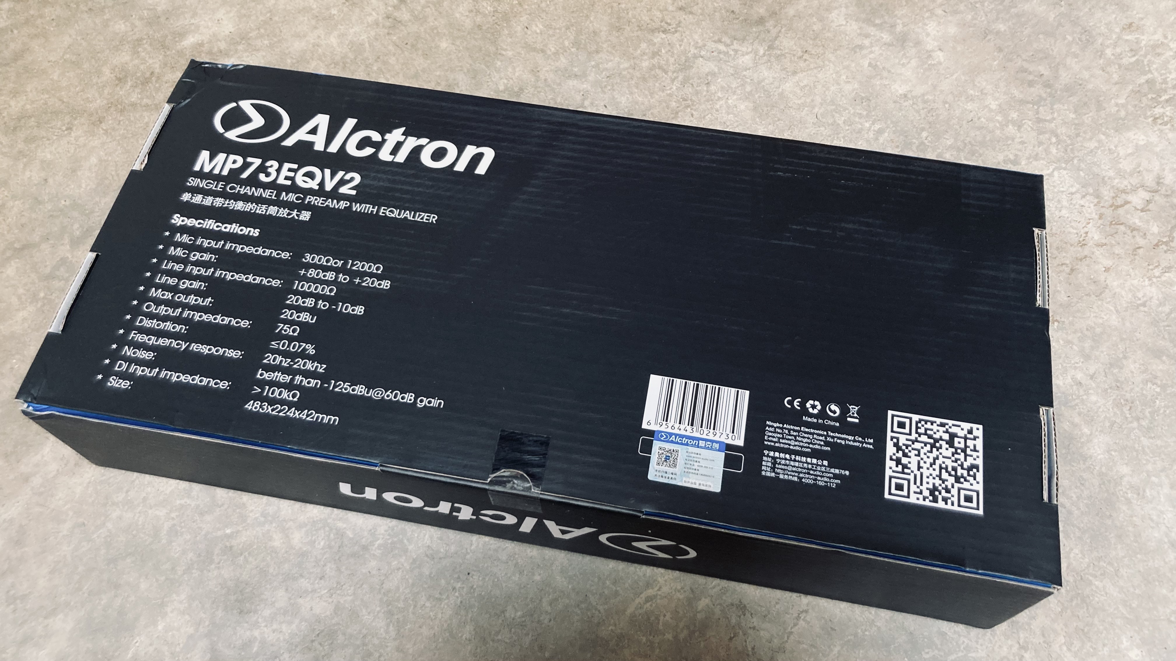 가장 먼저 제일 궁금했던 프리앰프 겸 EQ, MP73EQv2 박스를 꺼냈다. 적당히 하늘하늘한 컬러의 박스가 필자를 맞이했다. 중국에서 만들었다는 걸 자랑하듯이 제품 설명은 영어와 중국어뿐이다. 한국에 파는 제품인데 영어와 중국어뿐이라니... 아무리 특정 직종을 위한 제품이라 하더라도 나중에 로컬라이징을 해 줬으면 하는 약간의 소망은 있다.