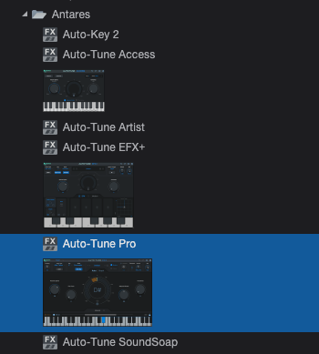 Auto-Tune Pro X를 설치한 후, DAW를 실행하면 약간의 플러그인 스캔이 진행된 후, 플러그인 리스트에서 다음과 같이 플러그인이 설치된 걸 확인할 수 있다. 만일 인식이 안 되었을 경우엔 DAW의 설정을 한번 확인해 보길 권장한다. Auto-Tune Pro X는 VST3, AU, AAX 등을 지원해 대다수의 DAW에서 정상적으로 실행할 수 있다. 필자의 경우 VST3을 선호하기 때문에, 다른 것들은 전부 숨김 처리하고 사용하고 있다.