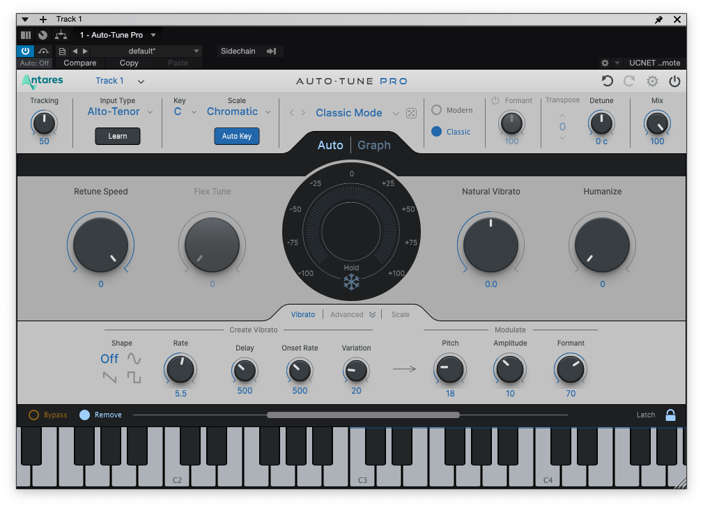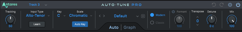 프리셋 옆에 "Modern" 및 "Classic"이라 적혀 있는 부분은 Auto-Tune의 엔진과 관련된 부분이다. 기술의 발전으로 인해 오디오 음정 수정 및 보정 알고리즘들을 계속해서 개선을 거듭해 왔지만, 그게 꼭 대중들에게 사랑받는 소리와 연결되는 건 아니다. Auto-Tune 5가 특히 그런데, 새롭게 개발된 음정 보정 알고리즘보다 Auto-Tune 5에 사용된 알고리즘의 컬러가 더욱 강해서 사람들이 Auto-Tune 5를 주로 사용하게 되는 경우가 빈번했다. 이를 알게 된 Antares가 이후 버전부터는 Auto-Tune 5의 알고리즘도 선택할 수 있게 추가함으로써 해결되었다. Modern을 선택하면 가장 최신의 Auto-Tune 엔진으로 작동하고, Classic을 선택하면 되면 Auto-Tune 5의 알고리즘으로 작동한다. 둘의 성향이 확실히 다르므로 명확한 목적을 가지고 선택하자.