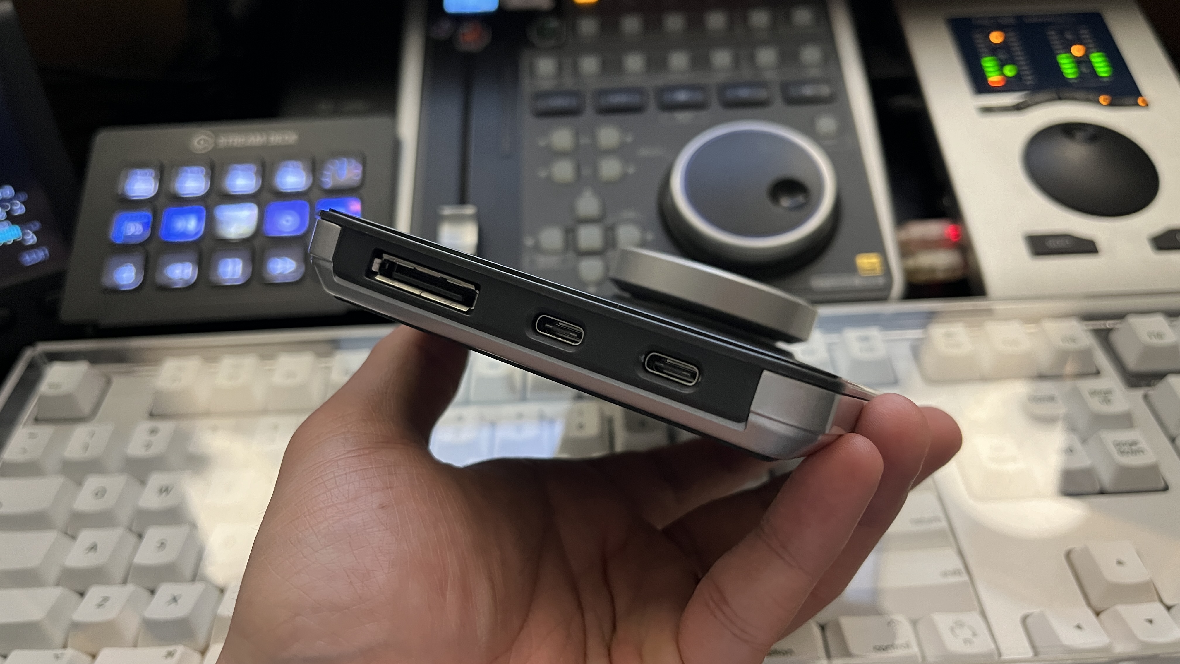 Apogee Duet 3의 첫인상은 굉장히 매끈한데, 어디선가 본 것 같은 느낌이다. 필자가 지금 주력으로 쓰고 있는 Babyface Pro와 비슷하면서도 어딘가 다른 느낌이라 굉장히 새롭다. 일단 조작부가 굉장히 적다. 전면의 노브를 제외하면 버튼이랄 게 없다.
