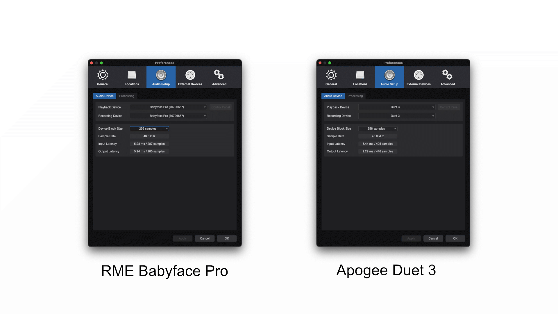 인터페이스인 만큼 간단하게 레이턴시 설정을 안 볼 수가 없다. 레이턴시는 두 인터페이스 다 준수한 값을 보여주고 있다. macOS의 Studio One 기준, 버퍼 사이즈 256으로 했을 경우를 위에 첨부한다. 물론 레이턴시가 성능의 전부를 대변하지는 않지만, 참고하기에는 좋다.
