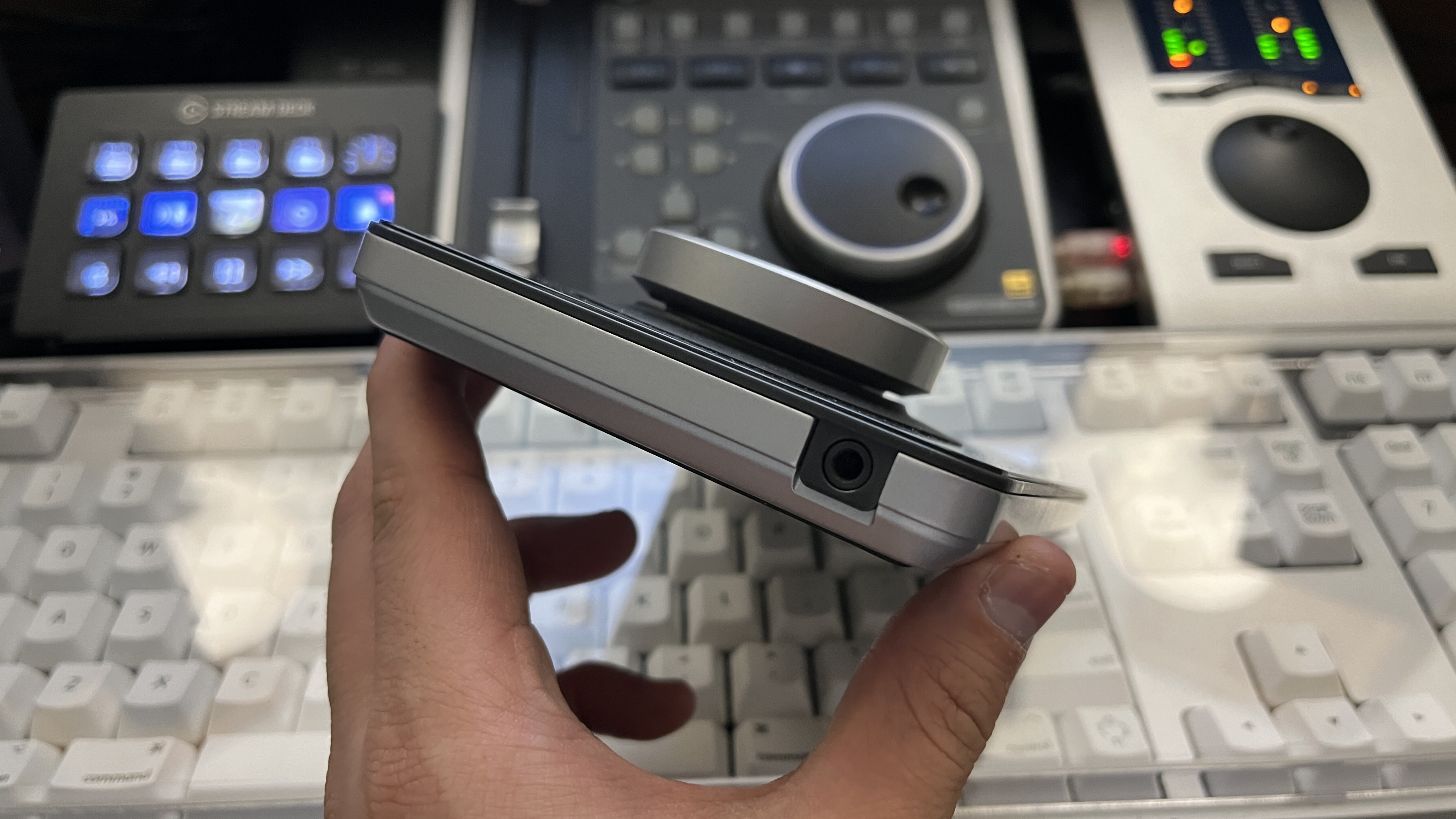 하단에는 3.5파이 단자가 있다. 4극을 지원하고 있어 필자가 사용 중인 Teenage Engineering M-1에서 단자 극성 문제가 발생하지 않았다. 의외로 극성 문제가 발생하는 3.5파이 이어폰 잭이 있다는 걸 감안하면 잘 만든 것 같다. 그런데 기본 구성이 6.3mm 헤드폰 단자가 아닌 건 살짝 의외였다. 보통은 6.3mm 단자를 사용하는 게 일반적인데 의외다.