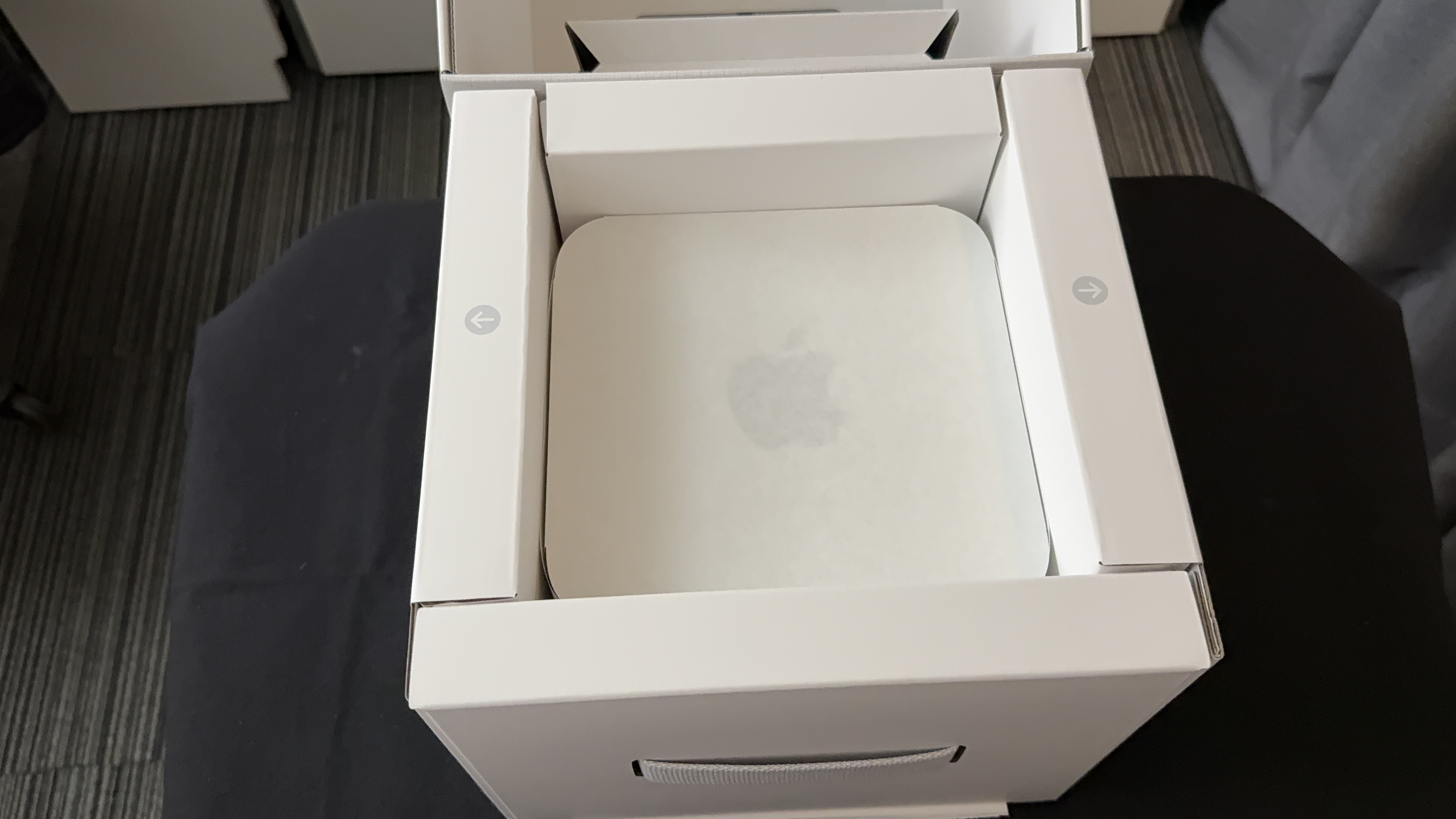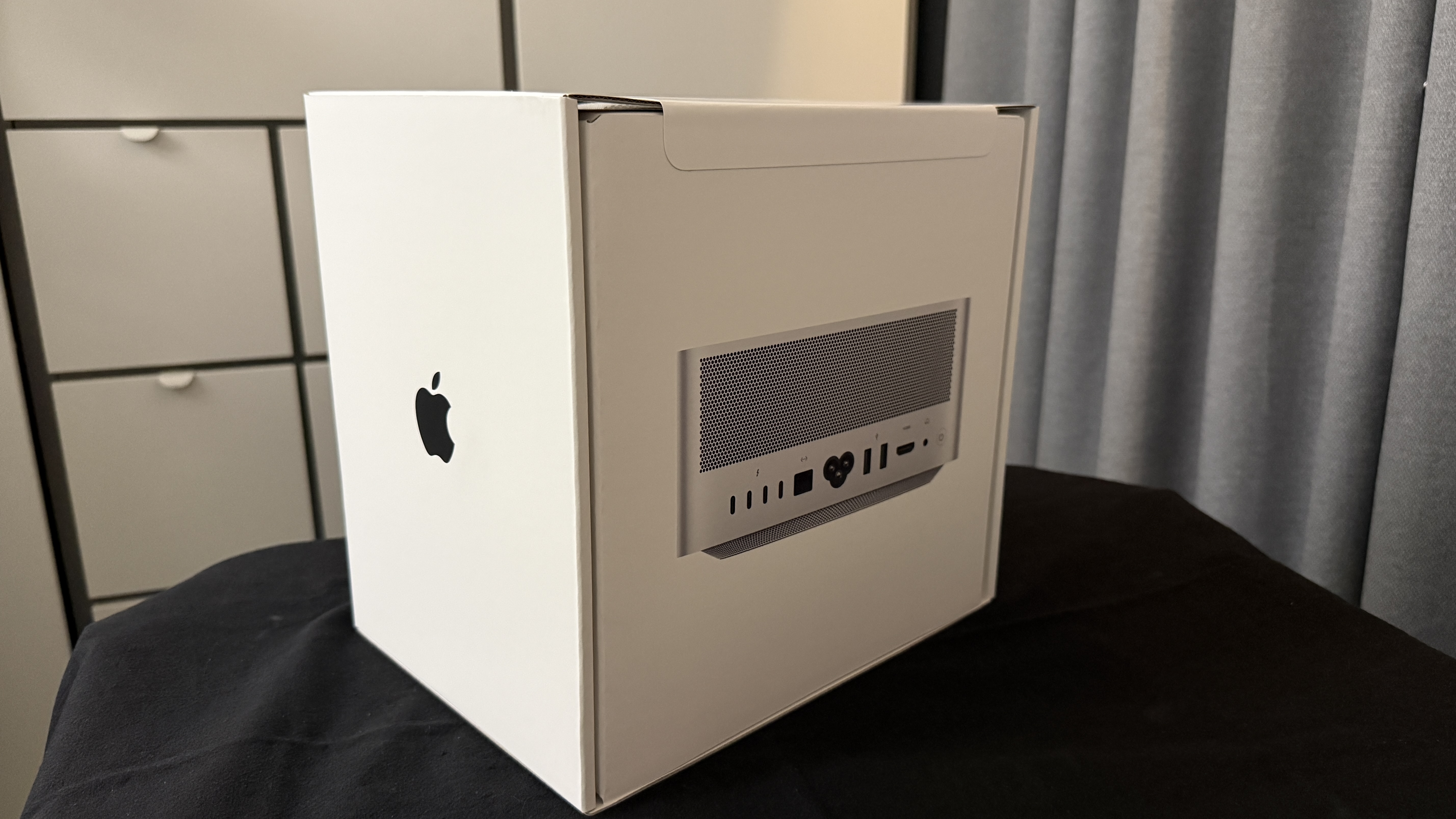 송장이 붙어있는 박스가 필자의 작업실 한 켠에 자리 잡았다. 들었을 때 꽤 육중한 무게라 당황했다. 스펙상으로는 약 3KG 정도 한다고 했는데 포장이 어찌나 튼튼한지 묵직함이 크기 대비 차원이 달랐다. 저 박스도 Apple에서 만들었다고 하는데, 겉보기로는 일반적인 박스의 느낌이다.