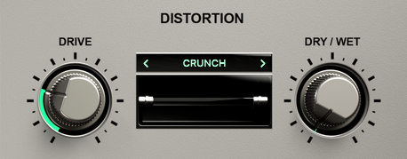 오리지널 TB-303과 Acid V와의 다른 부분이 하나 있는데, 별도의 디스토션 모듈이 들어가 있어 보다 오리지널 사운드보다 보다 다채로운 결과를 만들어낼 수 있다. 총 14개의 다른 디스토션 모듈이 있어 원하는 디스토션 사운드를 디자인한 사운드에 빠르게 적용할 수 있다. 별도로 Dry/Wet 노브가 있어 블랜딩도 가능하다. 여담이지만 디스토션이 작동할 때 들어오는 초록색 이펙트가 꽤 예쁘다.
