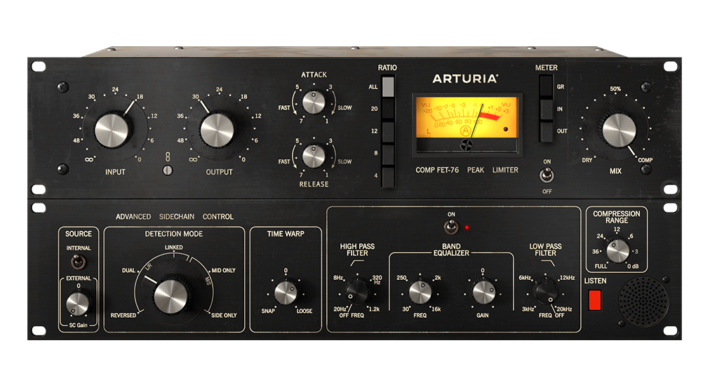 FET-76은 UREI, 지금의 Universal Audio가 만들어낸 명품 컴프레서, UA 1176의 Arturia 버전이다. 트랜지스터를 사용해 빠른 반응속도와 진공관의 느낌을 비슷하게 구현한 1176은 수많은 하드웨어 회사들과 소프트웨어 회사들이 이 컴프레서를 모델링했으며, 지금도 자기들만의 컬러를 섞은 1176 모델링 플러그인들이 출시되고 있다. 1176 컴프레서의 특징은 컴프레싱이 시작되는 지점인 스레숄드가 없다는 점인데, 이는 인풋 레벨과 아웃풋 레벨로 조절해줘야 한다. 보통의 1176 모델링 컴프레서들은 인풋 레벨과 아웃풋 레벨을 개별적으로 조절하게끔 되어 있지만 Arturia의 FET-76은 약간 다르다. 인풋 레벨과 아웃풋 레벨이 서로 링크되어 있어 인풋 레벨을 올리면 아웃풋 레벨은 줄어드는 구조를 가지고 있다. 이렇게 구성된 이유는 1176이 가지고 있는 컬러를 조절하는 동시에 사운드 레벨의 변화를 줄이고자 하는 것으로 생각된다. 물론 쉬프트 키를 누르거나 링크 해제 버튼을 눌러 개별적으로 조절할 수도 있다.