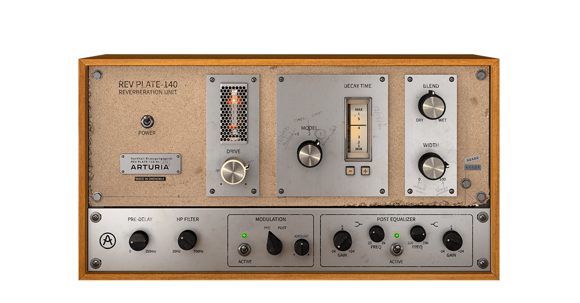 Universal Audio를 쓰는 사람이라면 이미 널리 알고 있을 EMT 사의 플레이트 리버브, EMT-140을 복각한 REV PLATE-140이다. 플레이트 리버브란 철판의 진동을 픽업으로 증폭시켜 만드는 리버브로 차가운 느낌의 잔향을 만들어내는데 자주 쓰인다. UAD에서도 모델링한 이 리버브는 UAD 버전의 140과 거의 흡사한 느낌을 주기 때문에 필자도 이미 자주 쓰고 있는 플러그인 중 하나다. 2019년, 크리스마스를 기념해서 Arturia 측에서 무료로 뿌렸던 플러그인이기도 하다.