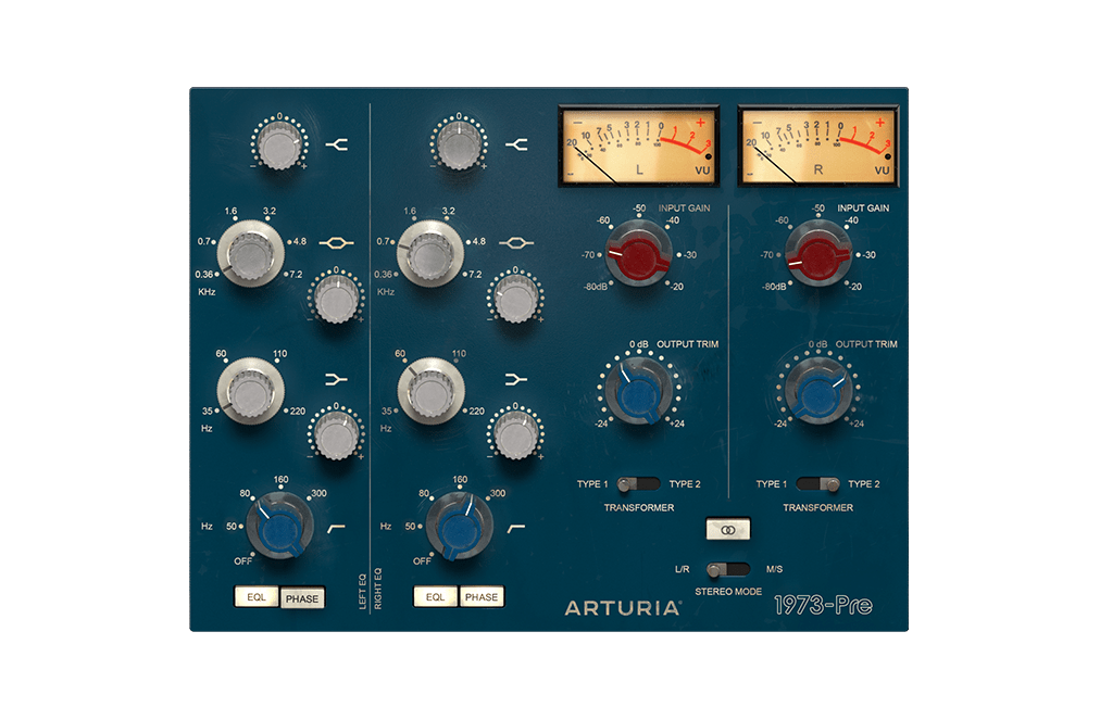 - 1973-Pre: Neve 1073 모델링. 까끌까끌한 새츄레이션과 깔끔하게 다듬어진 느낌. 오리지널 트랜스포머와 Arturia 커스텀 트랜스포머 선택 가능.