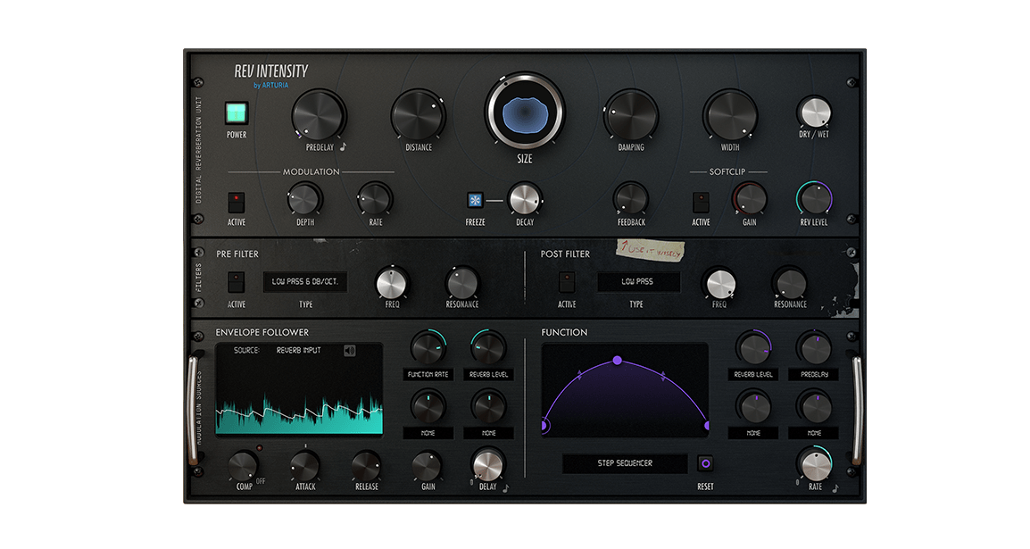 REV INTENSITY는 앞서 설명한 리버브 플러그인들과 다르다. 왜냐하면 INTENSITY는 기존에 존재하는 하드웨어 리버브를 모델링한 것이 아니다. 기존에 존재하는 다양한 리버브들의 특징을 알고리즘적으로 구현한 리버브 플러그인이다. 리버브가 발생하는 원리를 이용하는 알고리즘을 사용하기 때문에 기존의 하드웨어에서 만들 수 없었던 특별한 리버브를 만들 수 있는 게 장점이다. REV INTENSITY의 가능성은 무궁무진하다. 실제로 존재하지 않는 공간을 만들 수 있는 플러그인이라 리버브가 가진 본연의 목적을 넘어서 사운드 메이킹에도 이용이 가능한 리버브다.