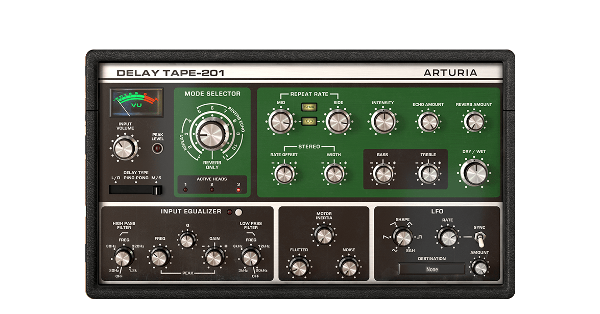 TAPE-201에는 오리지널 하드웨어엔 존재하지 않던 추가적인 기능들이 있는데, 오리지널 하드웨어의 기능을 더욱 증대시켜주는 인풋 이퀄라이저와 과 테이프 모터의 속도와 플루터, 그리고 테이프 노이즈의 양을 조절할 수 있는 테이프 섹션, 그리고 LFO 모듈이 추가되었다. 이는 디지털로 모델링 되면서 보다 편리하게 딜레이를 주기 위해 추가된 부분이라 생각된다. 딜레이를 그냥 쓰는 것보다 EQ를 걸어서 제어하는 경우의 선택지가 더욱 넓은 건 당연한 사실이니 말이다.