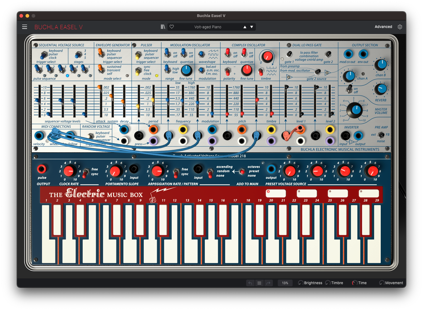 Arturia가 신디사이저 시대를 연 Moog Modular를 그냥 지나칠 리가 만무하다. 가감 없이 그대로 Modular V라는 이름으로 그대로 디지털로 옮겨왔다. 모듈러 신디사이저라 패치 케이블도 그대로 구현했다. ARP 2600와 마찬가지로 제대로 사용하려면 신스 지식이 있어야 하기 때문에 필자는 프리셋과 튜토리얼로 겨우 사용해 볼 수 있었다. 모듈러는 볼 때마다 어렵다.