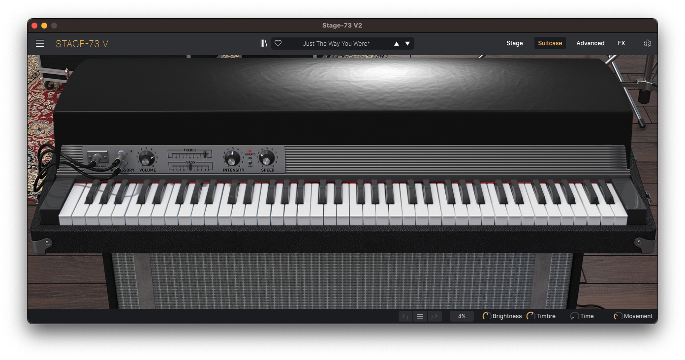 Arturia는 로즈 피아노 중 MK2 2종을 모델링하여 Stage-73 V라는 이름으로 내놓았다. 이름의 뜻은 모델링한 로즈 피아노 MK2 시리즈의 건반 수가 73개였기 때문이다. Stage-73 V에서는 Stage 모델과 Suitcase 모델을 골라서 사용할 수 있는데, 둘의 뉘앙스가 살짝 다르다. Arturia의 기능 추가는 상대적으로 덜한 편인데, 벨로시티 커브를 수정한다거나, 튜닝 및 픽업 거리, 픽업노이즈 등을 상세하게 조절할 수 있는, 로즈 피아노의 소리를 보다 돋보이기 위한 설정들로 가득하다. Arturia도 로즈 피아노는 어쩔 수 없었나 보다.