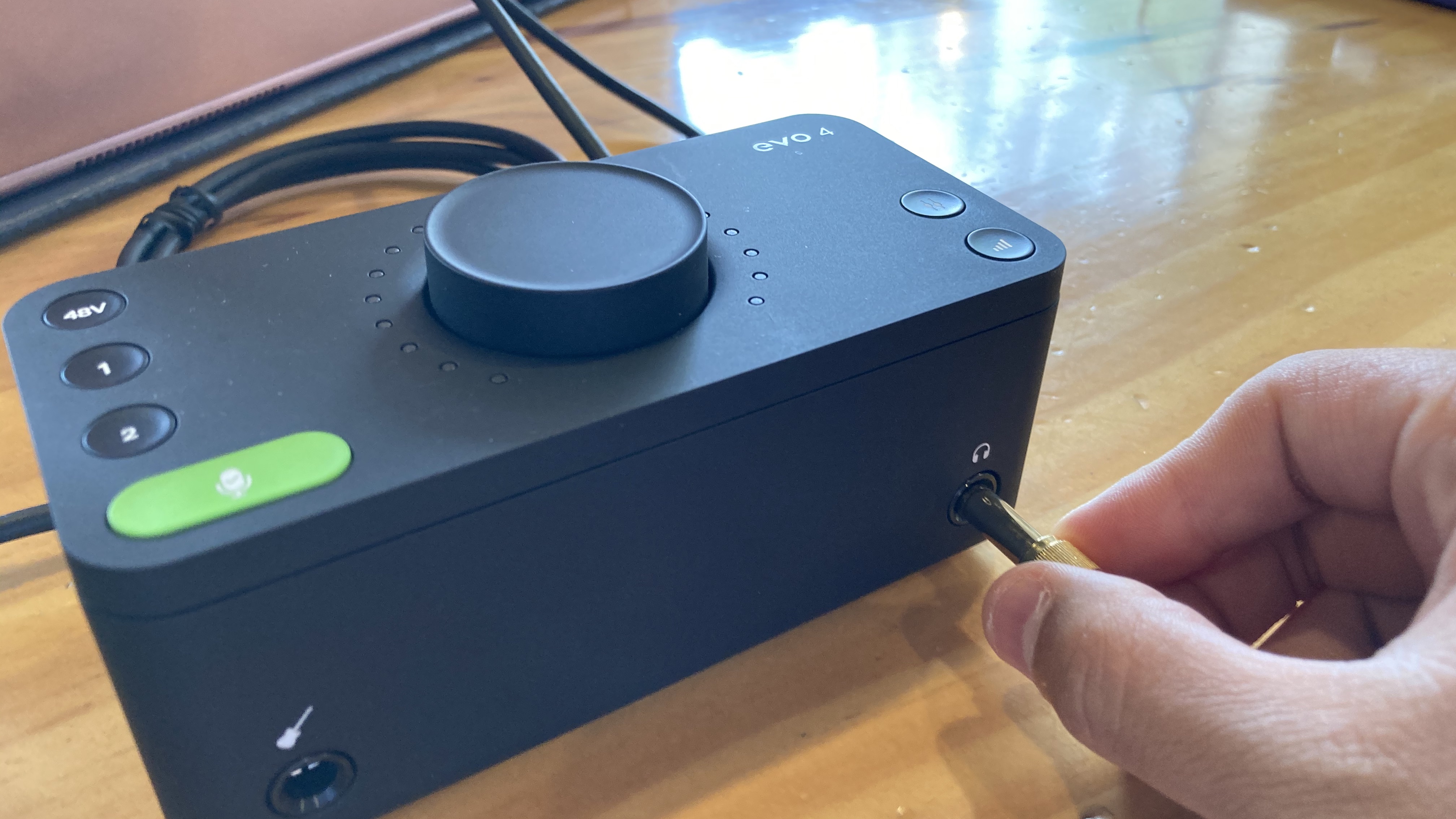 필자가 이해한 Audient EVO 시리즈는 휴대성을 살리면서 사용이 간편한 오디오 인터페이스인데, 6.3mm TRS 헤드폰 단자는 밖에서 사용할 때 조금 귀찮은 점이 많다. 의외로 많은 사람들이 6.3mm 잭을 사용하는 헤드폰을 가지고 있지 않다. 대부분은 3.5파이 표준 이어폰 잭을 사용하는데, Audient EVO 4에서 3.5 파이 이어폰을 사용하기 위해서는 반드시 6.3mm 헤드폰 단자로 바꿔주는 어뎁터를 사용해야 모니터링을 할 수 있다. 같은 회사의 다른 브랜드, Audient ID 시리즈 중 가장 저가형 모델인 ID4가 3.5 파이 헤드폰 단자를 지원하고 있다는 점에서 매우매우매우매우 아쉬웠다.