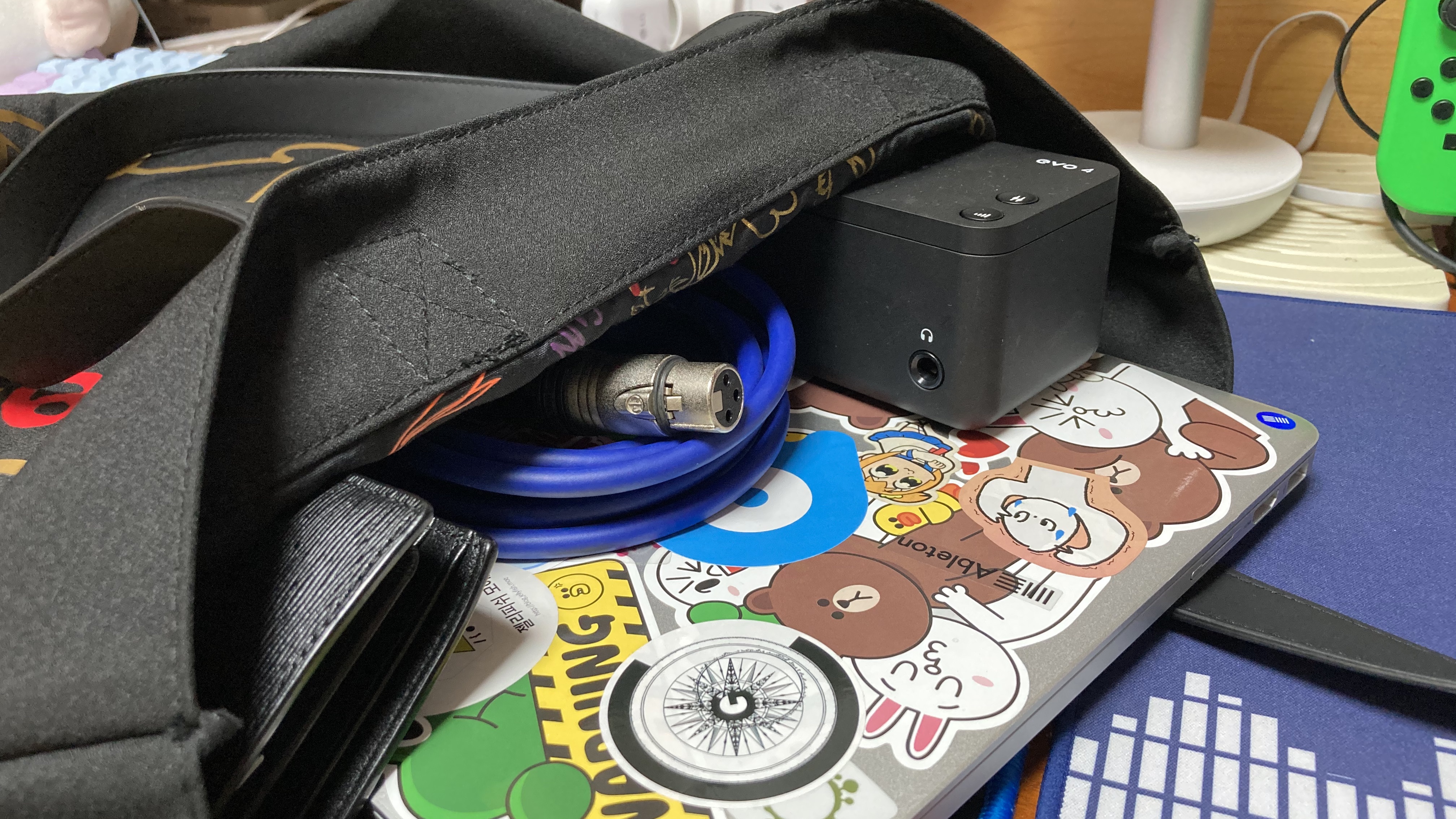 Audient EVO 4의 뒷면에는 컴퓨터와 연결하는 Type-C 단자와 스피커 연결을 위한 TRS 밸런스 단자, 그리고 TRS와 XLR 케이블 콤보 인풋 단자가 있다. Type-C 단자는 C to C 케이블로 아이패드에 연결해 사용할 수도 있고, 번들에 포함된 Type A to C 케이블을 이용해 컴퓨터에 연결해 사용할 수도 있다. 다이소에서 파는 저렴이 케이블을 사용할 수도 있지만 제대로 전력이 공급되지 않거나 연결이 끊기는 등, USB 케이블을 가리는 경우가 있으니 되도록 번들에 포함된 케이블을 사용하는 걸 권장한다.