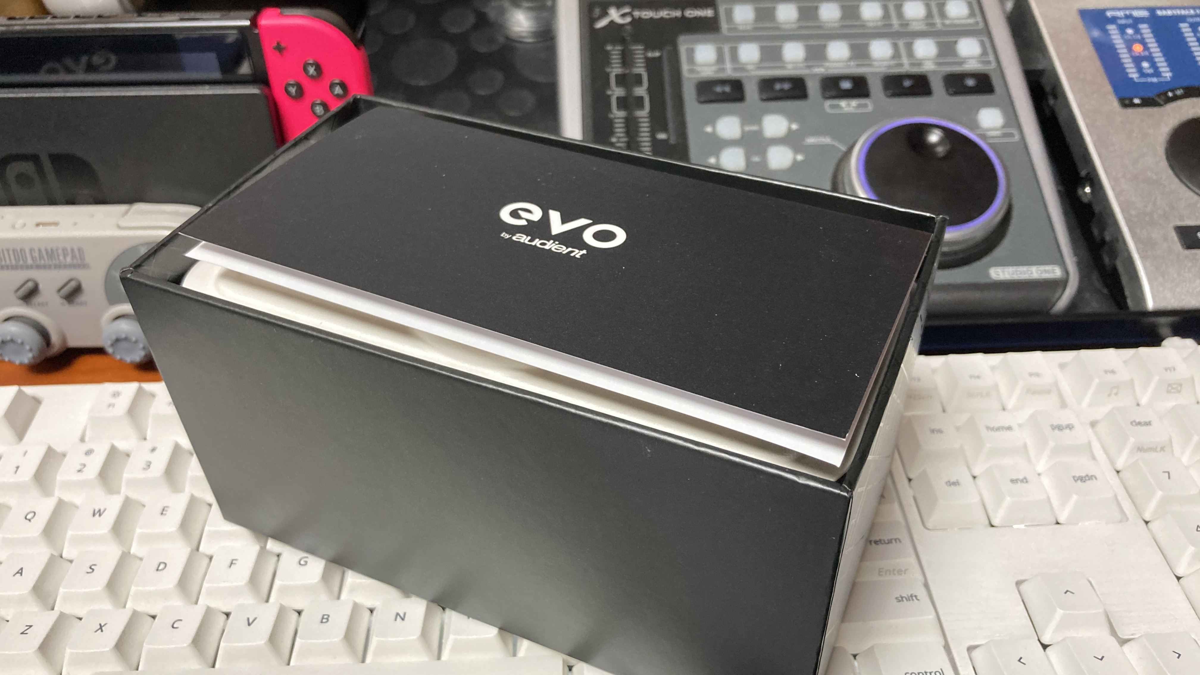 Audient EVO 4의 박스를 처음 보았을 때, 문득 든 생각은 "스마트폰 박스 같다"였다. Forcusrite나 RME, 그리고 Fluid Audio 등 필자가 지금까지 사용해왔던 오디오 인터페이스의 크기들은 책상에 올려놓고 쓰는 걸 상정하였기에 크기가 컸고, 제품을 안전하게 보호해야 했기에 박스 역시 큼직한 경우가 많다. 당장 Audient의 ID 라인업 역시 박스가 상대적으로 큼지막하다. 그런데 Audient EVO 4는 신기하게도 스마트폰 박스의 느낌이 난다. 아무래도 박스가 매우 작고 필자가 이전에 사용했었던 아이폰 3GS 박스와 비슷한 느낌으로 디자인된 박스 때문인 듯하다.