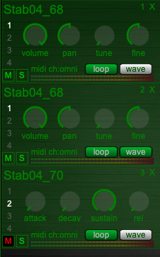 마음에 드는 샘플을 확인했다면 이제 불러올 차레다. 샘플 브라우저 옆에는 샘플을 편집할 수 있는 편집 브라우저가 위치해 있다. 여기에 샘플들을 추가해서 동시에 연주할 수 있다. 총 불러올 수 있는 샘플의 개수는 16개다. 물론 많이 불러올수록 컴퓨터가 아파하기 때문에 적당량만 넣는 게 중요하다.