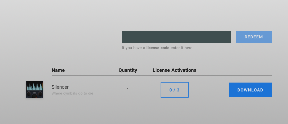회원 가입 후, 나타나는 개인 페이지 상단에 라이센스 코드를 붙여넣을 수 있는 작은 박스가 나타난다. 바로 아래의 이미지에서도 볼 수 있는 작은 창이다. 라이센스 코드를 붙여 넣은 후 Redeem을 누르면 위 이미지와 같이 이 제품을 등록했다는 메시지가 나타난다.