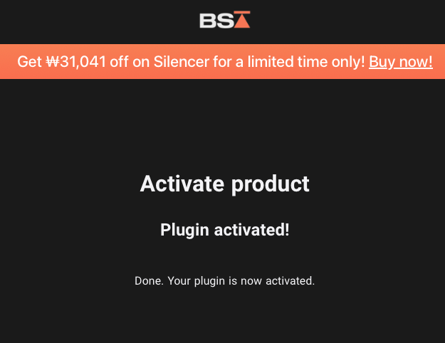 플러그인 활성화 과정은 굉장히 간단하다. 플러그인을 설치한 후, 처음 플러그인을 실행하면 위의 이미지와 같이 라이센스 활성화를 하라는 메시지가 나타난다. 여기서 데모 라이센스를 활성화할 수도 있지만 이미 라이센스를 가지고 있기에 필자는 Activate your Plugin을 클릭했다. 클릭 후, Black Salt Audio 홈페이지로 자동으로 리다이렉트된다. 미리 로그인을 한 상태면 인증이 스무스하게 진행된다.