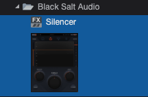 Black Salt Audio Silencer를 설치한 후, DAW를 실행하면, 다음과 같이 정상적으로 플러그인이 설치된 걸 확인할 수 있다. Black Salt Audio Silencer는 VST3, AU, AAX 등을 지원해 대다수의 DAW에서 정상적으로 실행할 수 있다. 필자의 경우 VST3을 선호하기 때문에, 다른 것들은 전부 숨김 처리하고 사용하고 있다.