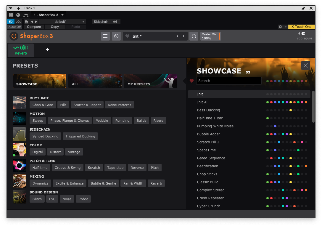 제품 인증 및 설치까지 마무리한 후 DAW를 확인해 보면 이펙터 리스트에 ReverbShaper가.... 나타나지 않는다. 왜냐하면 ReverbShaper는 ShaperBox 3 내부에서 작동하는 모듈 중 하나기 때문이다. 그래서 ShaperBox 3의 스펙을 그대로 따라간다. AU, VST2, VST3을 지원하고 있어 어떠한 DAW에서도 사용할 수 있다. 필자가 자주 사용하는 Studio One은 세 가지의 모든 플러그인 규격을 지원하고 있어 사용하기 편리하다. 다만 가독성을 위해 VST3 규격의 플러그인을 제외하곤 전부 숨김 처리한 뒤 사용하고 있다.