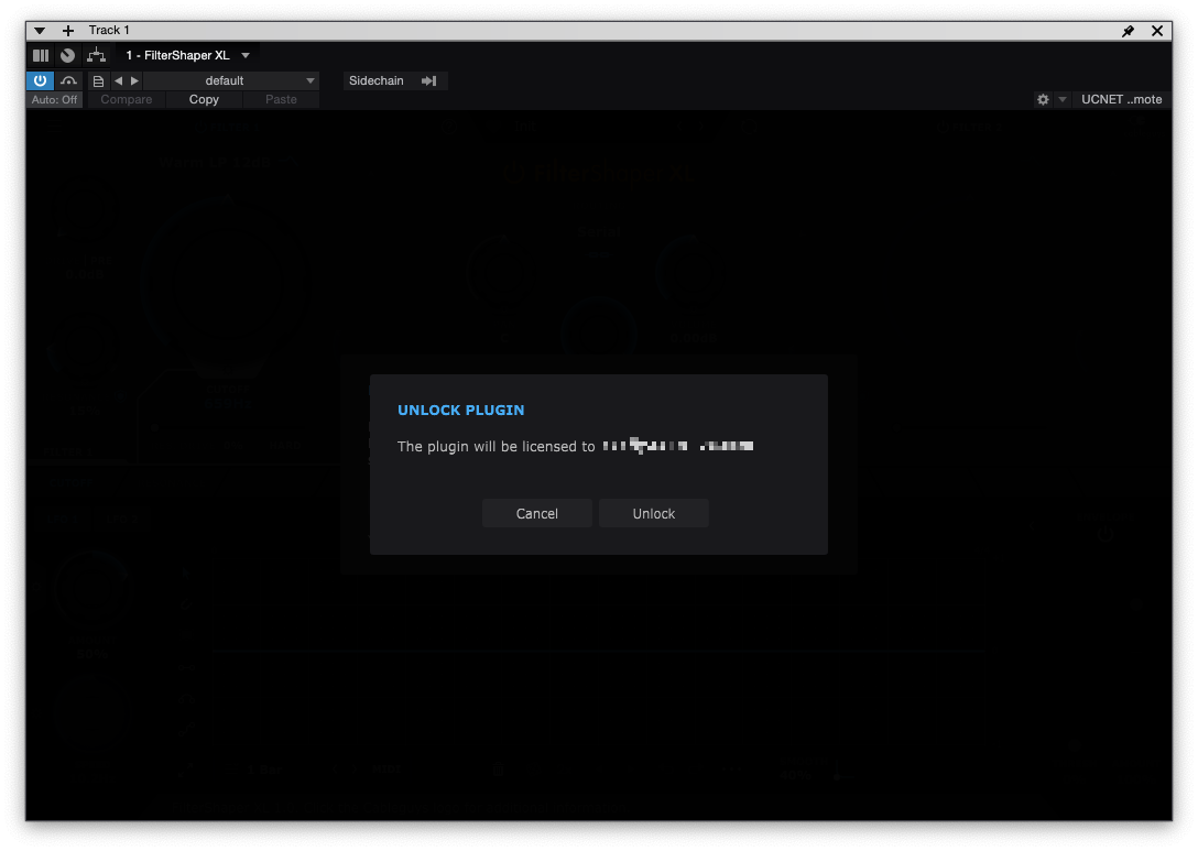 라이센스 파일을 넣으면 정말 이 이펙터를 잠금 해제할 것인지 물어본다. Unlock 버튼을 누르면 설치 및 인증 과정이 성공적으로 마무리된다