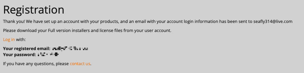 계정 등록 과정이 끝났다면 입력했던 이메일과, 자동으로 생성된 비밀번호를 확인할 수 있다. 추후 Cableguys에서 라이센스 키 발급 시 필요하므로 메모해 놓자. 기존에 같은 이메일로 Cableguys에 계정 등록을 한 적이 있는 사람이면 그 계정으로 로그인하면 된다.