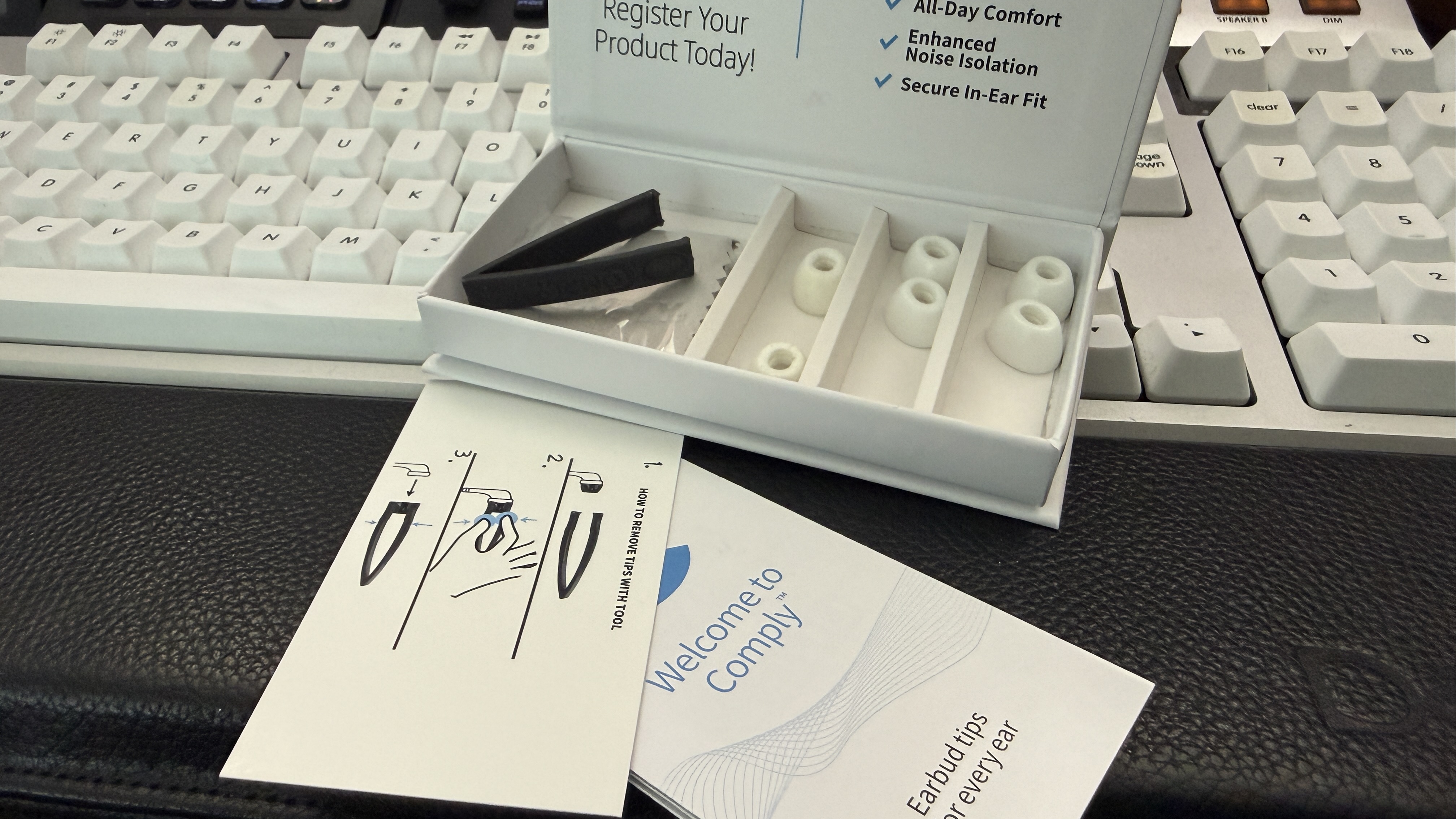 에어팟 프로 3을 작년에 구매했다. 기존에 사용하던 에어팟 프로 1세대가 망가지지 않고 멀쩡히 있었지만 에어팟 프로 3에서 강화된 강력한 노이즈 캔슬링 성능을 체험한 이후 충동구매했다. 이후 일본 출장 때 비행기 귀마개로 실전 테스트를 해 봤는데 이거 물건이다. 끼우고 잠깐 눈을 붙였는데 벌써 착륙할 때였다. 확실히 노이즈 캔슬링이 더욱 강해진 느낌이다. 또한 에어팟 프로 3부터 기본 이어팁 설계가 약간 바뀌었다고 하는데, 이어팁 안에 폼이 충전되어 있다고 한다! 미끄러운 번들 이어팁 때문에 고생했던 필자로서는 꽤 기대하고 있었는데... 외부 소재는 그대로였다. 쓰다 보면 이어폰이 쏙 빠지는 현상을 만나고야 말았다. 또 이어팁을 사야 하나.. 하던 차에 삼아사운드의 도움으로 이전부터 신세 지고 있던 이어팁을 제공받게 되었다. Comply의 새로운 이어팁 시리즈, Comply TRUEGRIP MAX For AirPod Pro 3이다.