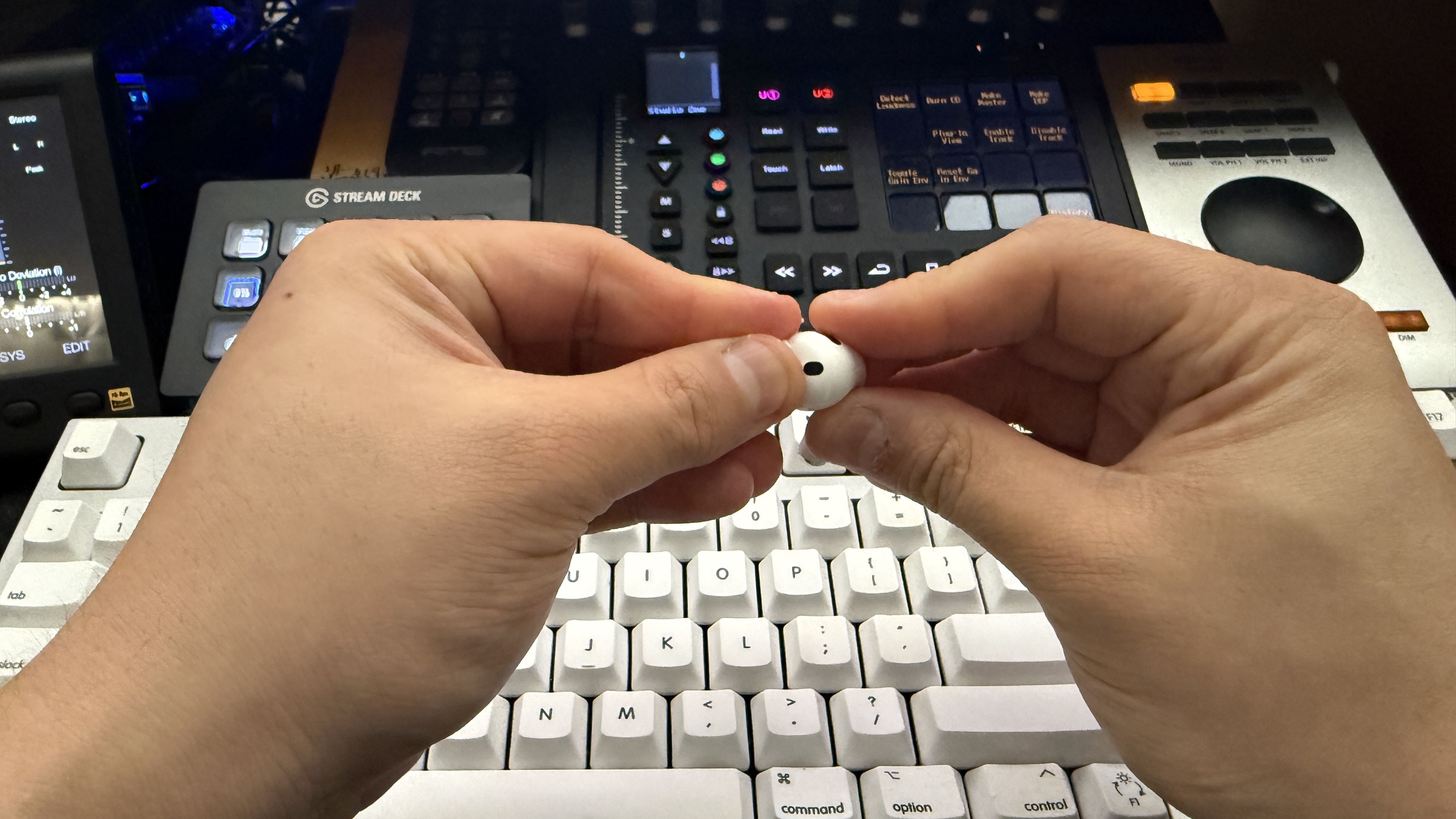 Comply TRUEGRIP MAX For AirPod Pro 3을 장착하기 전 우선 에어팟 프로 3의 기본 이어팁을 살펴보자. 기본 에어팟은 실리콘으로 만들어져 있으며 팁 끝쪽에만 약간 폼으로 살짝 채워넣은 형태다. 그렇기에 팁이 자유롭게 변형되지만 고정력이 약하고 실리콘 특성상 미끄러워 쉽게 빠진다. 에어팟 프로 1세대의 이어팁보단 나아졌지만 여전히 잘 빠진다.