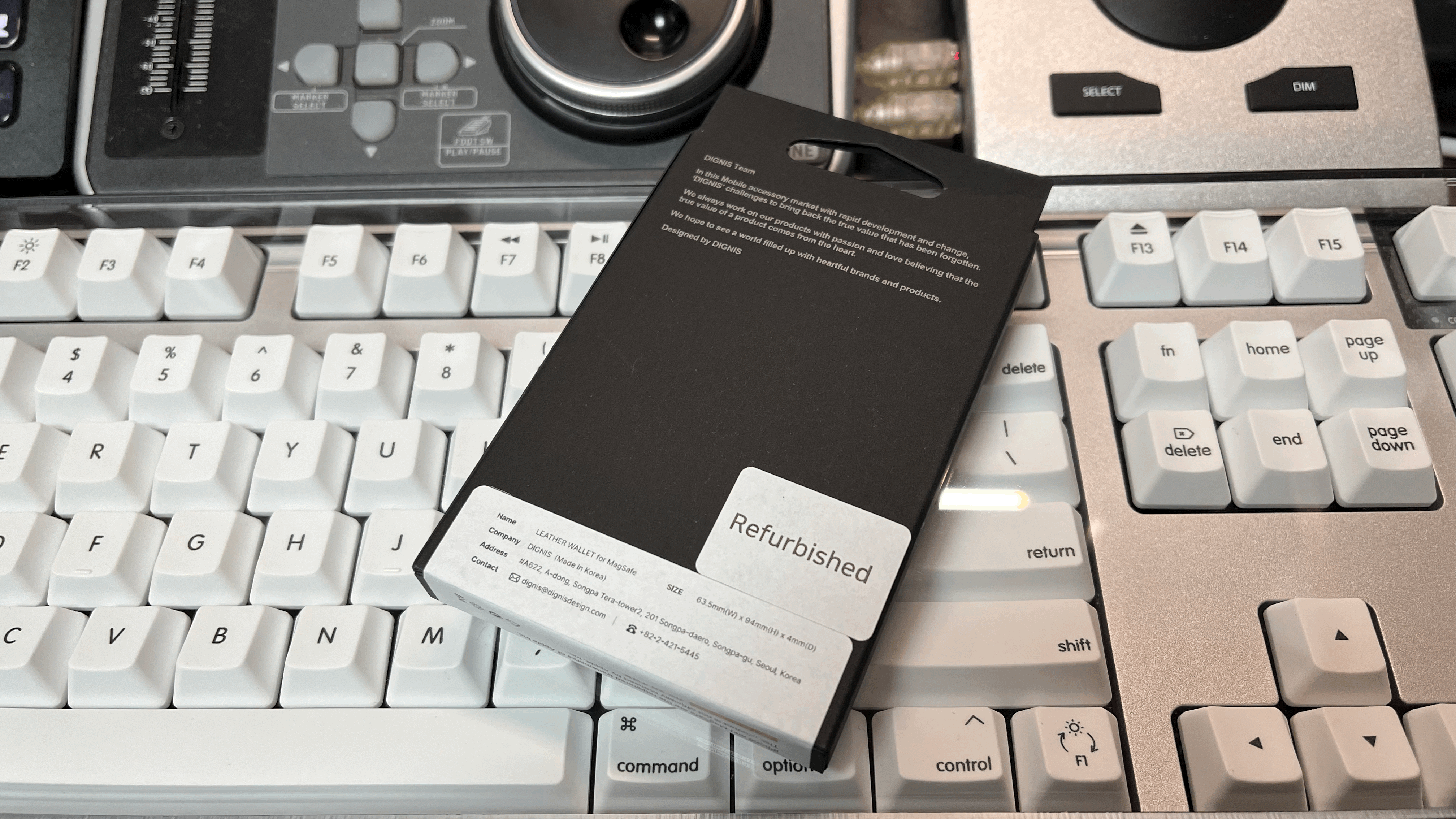 Dignis(디그니스)는 카메라 주변기기나 DAP 등 가죽 제품들을 주로 제조하는 공방으로, 나름대로 고정 팬을 가지고 있는 가죽 브랜드다. 필자는 디그니스라는 브랜드를 IT 커뮤니티 사이트인 클리앙에서 처음 알게 되었는데, 공방 운영자가 아이포니앙에서 활동하면서 제품 베타 테스트를 진행하는 걸로 유명했기 때문이다. 필자가 구입한 디그니스 맥세이프 가죽 지갑 역시 클리앙에서 베타 테스트를 진행한 제품 중 하나다. 다만 이번에는 리퍼비시 제품으로 구입했다. 리퍼비시 제품은 가죽 반점이나 흠집 등이 있어 가치가 떨어진 상품들이 대상이 된다고 디그니스 측에서는 설명하고 있다. 그런데 가끔 리퍼비시라고 불리기엔 너무 고퀄리티인 제품들을 받았다는 후기가 있어 리퍼비시 제품을 구입할 만하다 라는 판단이 섰다. 인고의 고민 끝에 필자는 카드 2개가 들어가는 옐로우 모델을 25,800원에 구입했고, 하루 만에 배송받았다.