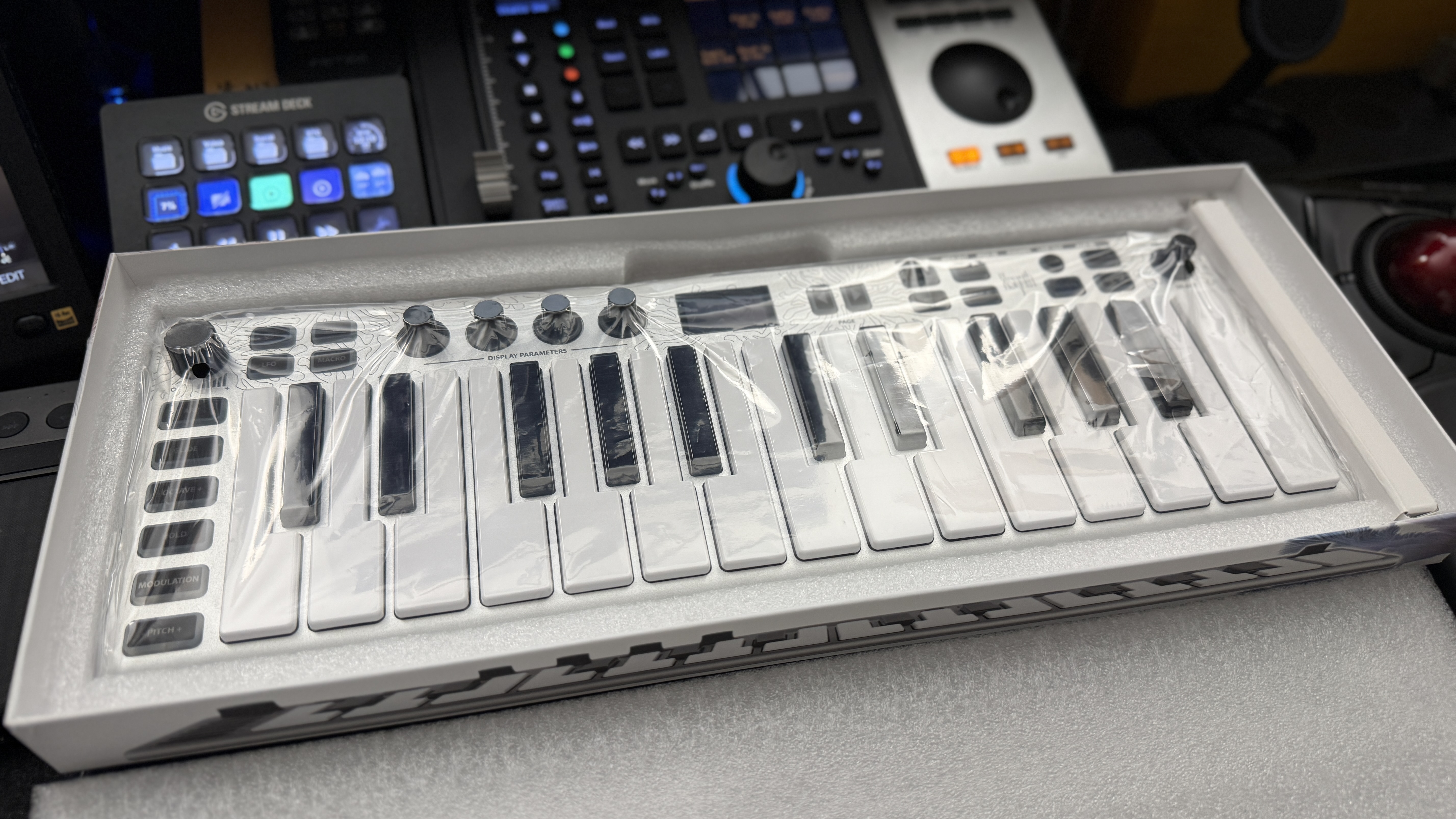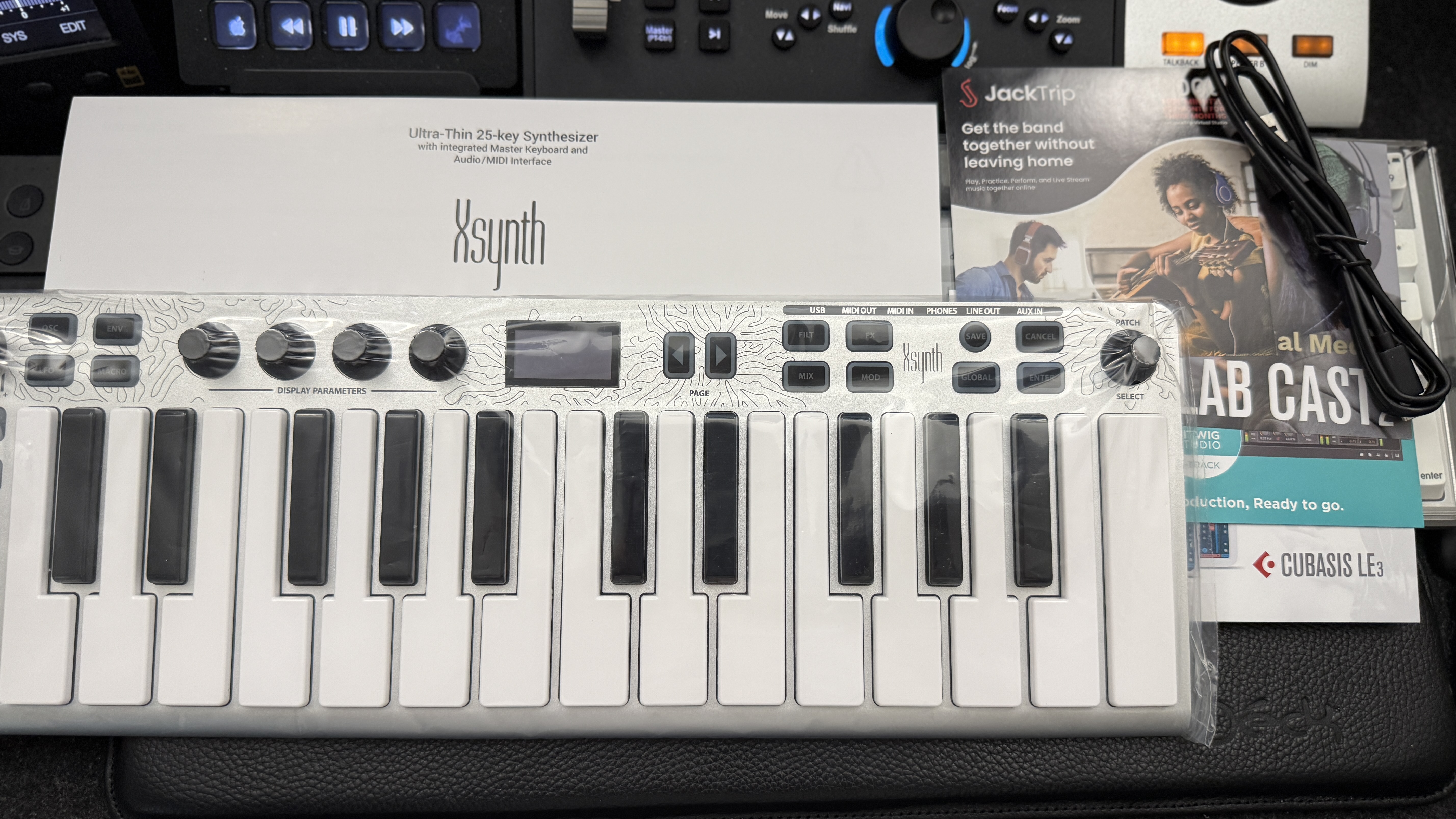 각설하고 빠르게 패키지를 열어보자. 열자마자 굉장히 슬림한 오늘의 주인공이 자태를 뽐내고 있다. 이전에 XKey를 잠깐 써본 적 있는 필자는 새롭게 돌아온 Xsynth의 모습이 낯설면서도 낯익은 복잡한 느낌이다.