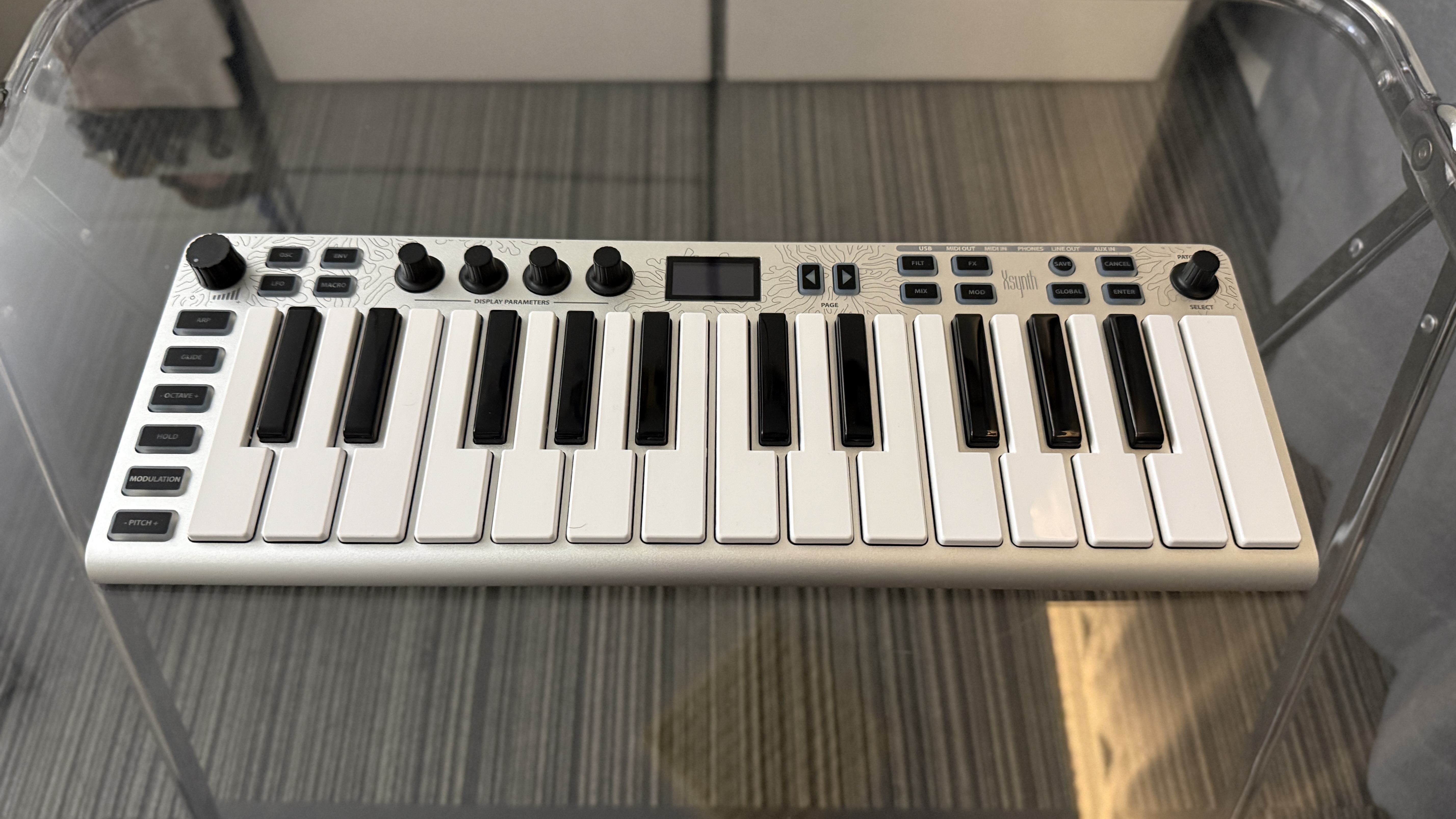 크게 바뀐 점이 보이지 않는 Xsynth지만 천천히 살펴보면 엄청난 변화들이 가득하다. 먼저 상단부에 오실레이터, 엔벨롭, LFO, 매크로 설정을 위한 기능 키와 파라미터 조정용 노브, 그리고 전원 스위치를 겸하는 볼륨 노브가 추가되었다. 좌측에도 Xkey에 없던 아르페지오, 글라이드 버튼이 추가되었다. 압력 감지 모듈레이션 및 피치 버튼은 여전히 건재하다.