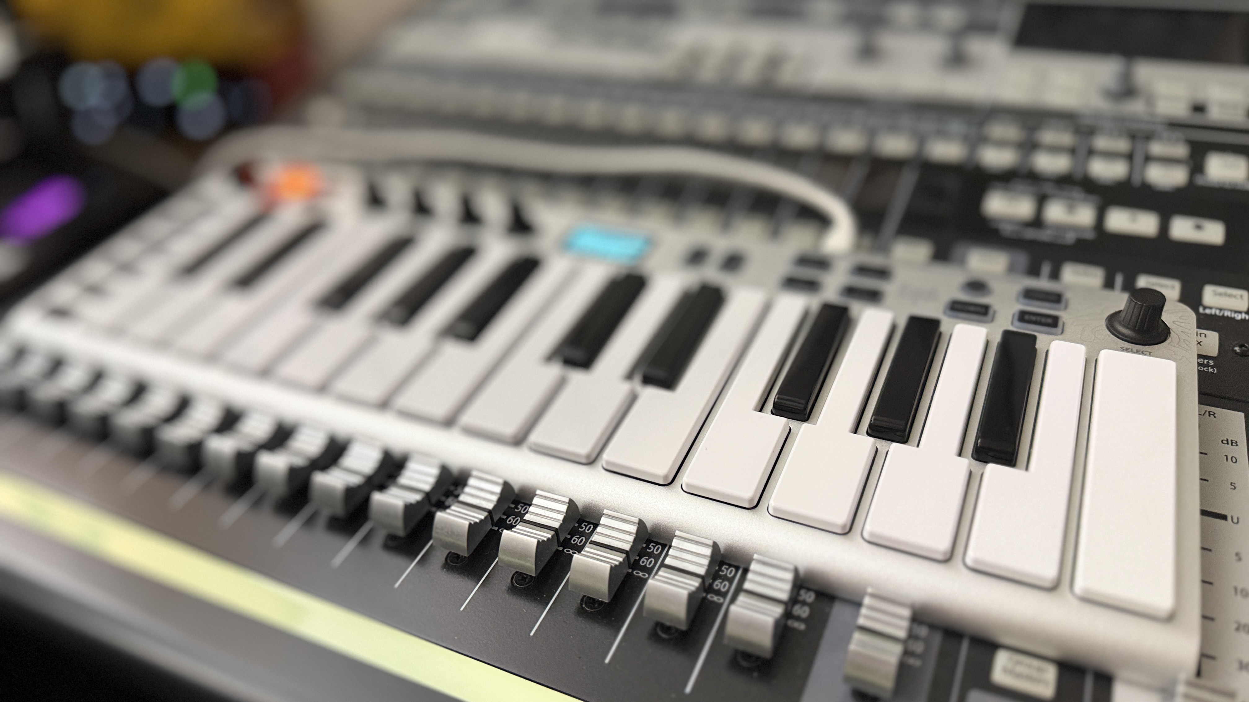 두 번째로는 필자의 주력 마스터 키보드, Novation Launchkey 25 mk4와 비교해 보았다. 이거는 Launchkey 25 키가 상대적으로 작게 느껴졌다. 같은 25 키인데 드럼 패드도 있고 물리적인 피치 터치 및 모듈레이션 터치 스트립이 있음에도 불구하고 Launchkey 25 키가 작게 느껴지는지 신기할 뿐이다. 물론 상하로 조금 더 넓긴 하지만 새삼 대기업 Novation의 기술력이 감탄스러울 뿐이다.