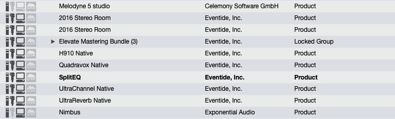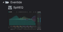 제품 인증 및 설치까지 마무리한 후 DAW를 확인해 보면 이펙터 리스트에 SplitEQ가 표시되고 있다. AU, VST2, VST3을 지원하고 있어 어떠한 DAW에서도 사용할 수 있다. 필자가 자주 사용하는 Studio One은 세 가지의 모든 플러그인 규격을 지원하고 있어 사용하기 편리하다. 다만 가독성을 위해 VST3 규격의 플러그인을 제외하곤 전부 숨김 처리한 뒤 사용하고 있다.