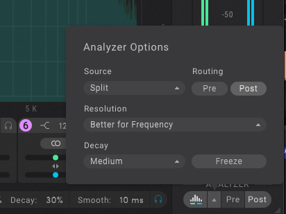 그런데 일단 밴드를 한번 조작하게 된다면 무언가 다른 점을 알게 된다. 하나의 밴드에서 2개의 설정을 할 수 있게 분기화된다. 위에서 다룬 Transient와 Tonal에 대한 설명이 바로 여기에 사용되는 기능이다. 각 밴드별로 Transient 및 Tonal을 다르게 설정할 수 있어 6K 대역에서 트랜지언트만 줄여 하이햇의 날카로운 느낌을 줄인다거나, 혹은 120Hz에 Tonal만을 사용해 어택은 살리면서 킥 드럼의 존재감을 키울 수도 있다. 둘을 동시에 부스트 하는 것도, 하나는 부스트, 하나는 컷을 할 수 있어 굉장히 자유롭다.