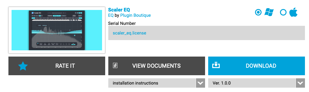 결제가 끝난 후, 상단의 "My Account"를 클릭하면 사진과 비슷한 형태로 방금 전에 구매한 Excite Audio Bloom Vocal Aether의 시리얼 번호가 표시된다. 그 밖에도 설치 파일 다운로드와 설치 시 주의사항 등을 확인할 수 있다. 만일 시리얼 대신 영문으로 긴 안내문이 표시되어 있다면 아직 전산상으로 시리얼 번호가 발급되지 않았다는 뜻이므로 조금 기다려야 한다.
