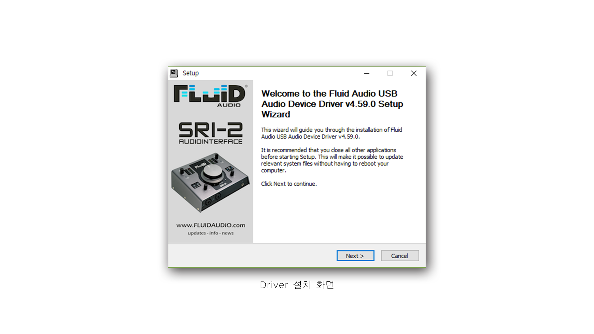 Windows 10에서 원활하게 SRI-2를 사용하기 위해서는 먼저 오디오 인터페이스 드라이버를 설치해야 한다. 드라이버는 Fluid Audio 홈페이지의 Download에서 다운로드 받을 수 있다. 최신 펌웨어 역시 같은 곳에서 다운로드할 수 있다.