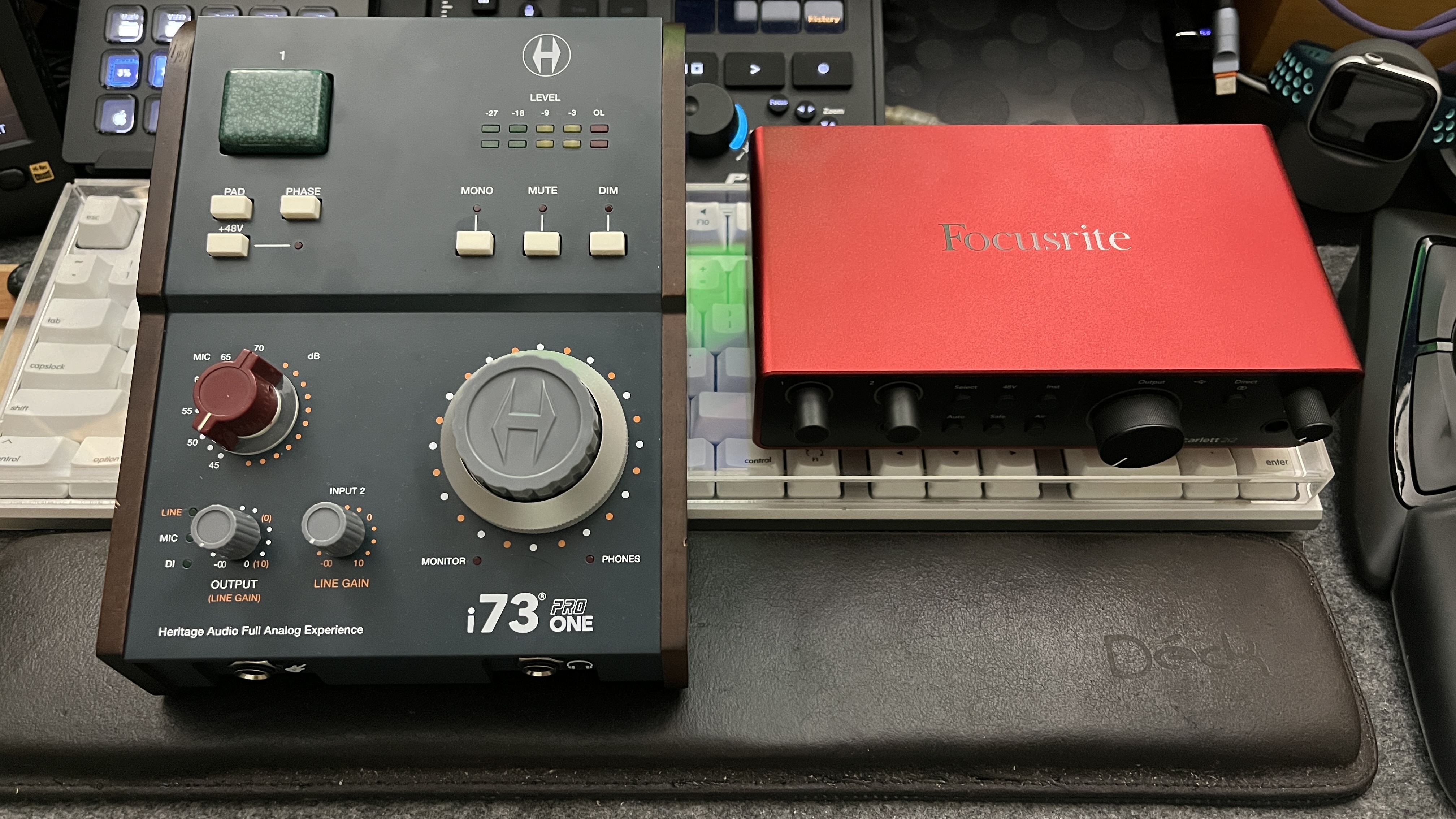 정리하자면, Heritage Audio i73 Pro One은 70년대의 하드웨어의 느낌, 소리를 개인 작업실에서 쉽게 사용할 수 있는 빈티지 지향 오디오 인터페이스 겸 프리앰프다. 위에도 간단하게 언급했지만 프리의 성능이 굉장히 좋았다. 1073 스타일의 트랜스포머가 내장된 프리앰프가 있어 비슷한 가격대의 오디오 인터페이스보다 훨씬 아날로그적인 색을 가지고 있다. DI 단자의 품질도 꽤 훌륭했다. 하드웨어적 완성도도 굉장히 놓아 계속 만지고 싶을 정도다. 내장 DSP로 구동할 수 있는 Heritage Audio 이펙터의 품질도 실제 작업에 투입했을 때, 무리 없이 사용할 수 있는 정도였다. 컴프레서가 있어 디스코드 같은 통화에서 보다 목소리를 뚜렷하게 만들 수 있어 좋았다.