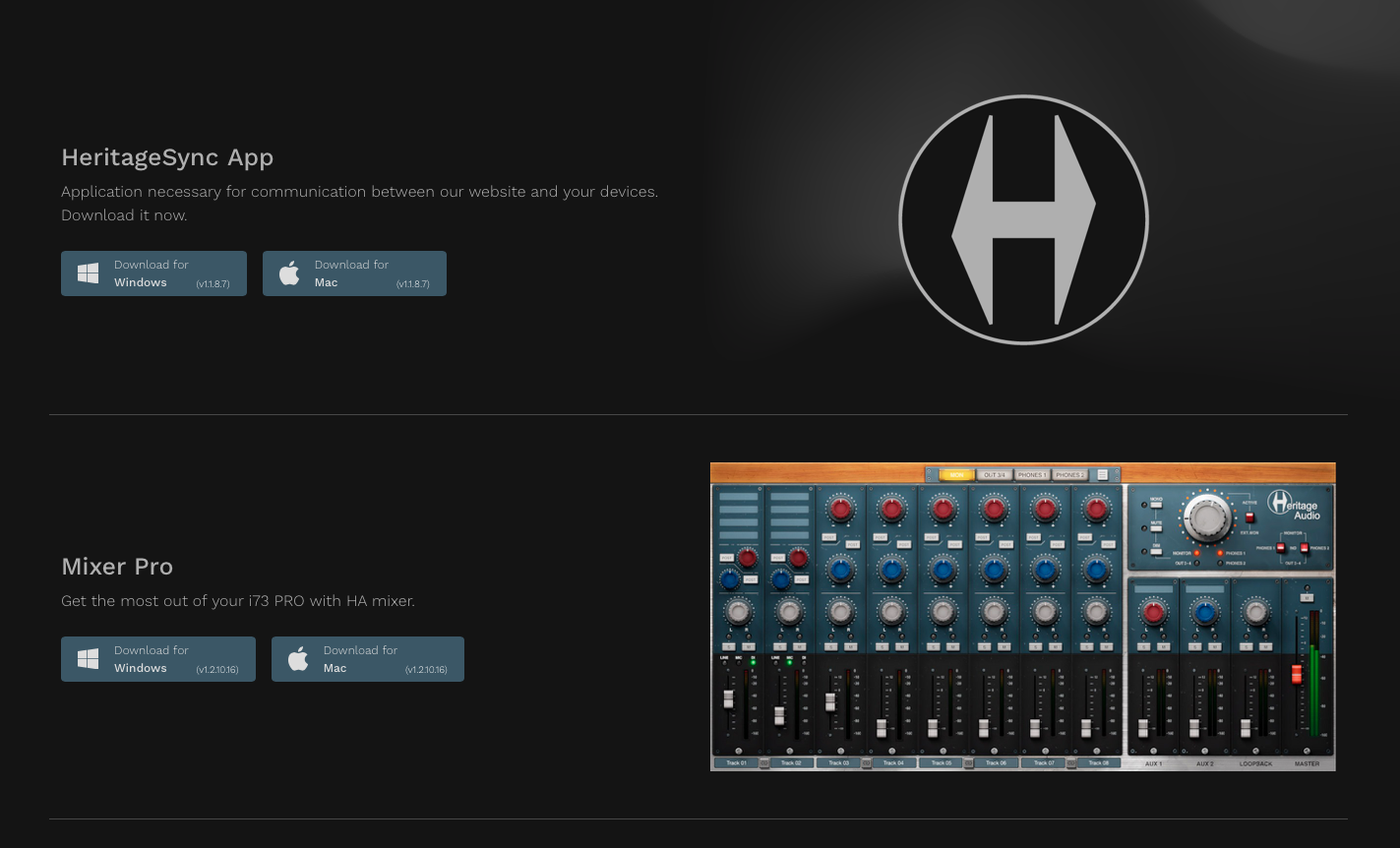 아날로그적 요소가 듬뿍 들어간 i73 Pro One은 의외로 디지털화 된 부분들이 많은 오디오 인터페이스다. 내부에 DSP 칩셋이 내장되어 있어 볼륨 조절 및 자체 플러그인들을 사용할 수 있다. 물론 i73 Pro One을 컴퓨터에 연결해 제대로 사용하려면 "HeritageSync" 및 "Mixer Pro"라는 별도의 프로그램을 설치해야만 사용할 수 있다. Windows의 경우 이 프로그램을 설치하지 않으면 드라이버조차 잡히지 않는다. 문제는 이 프로그램을 사용하기 위해서는 회원 가입 및 제품 등록이 먼저 이루어져야만 한다. 중고 거래 시 조금 애로사항이 꽃필 것 같은 구조긴 하지만 여차저차하여 써볼 수 있게 되었다.