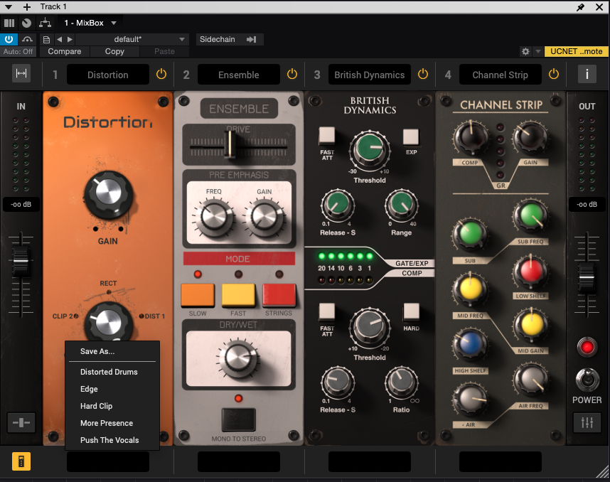 만일 Mixbox의 다양한 이펙터들을 어떻게 조합해야할 지 감이 잡히지 않는다면 프리셋을 사용해보자. 다양한 소스에 대응되는 게 특징인데, 굉장히 방대한 양의 프리셋을 가지고 있어 하나씩 살펴보는 맛이 있다. 자신이 원하는 프리셋을 새롭게 만들어서 저장할 수도 있다.