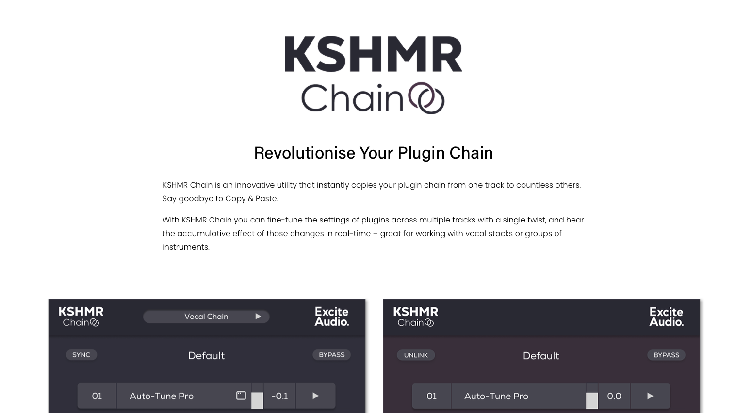 음악 작업을 할 때 종종 특정 채널에 동일한 값의 플러그인들을 여러 번 붙여 넣어야 하는 경우가 있다. 이전까지는 일일이 체인을 복사 붙여 넣는 방향으로 작업했지만, 만일 체인에 들어간 플러그인들을 조절할 일이 생긴다면 무척 귀찮아진다. 하나를 고치고 다른 데에 붙여 넣고 다시 반복하고... 노가다 그 자체다. 이러한 노가다를 간단하게 해결할 수 있는 플러그인이 있다면 얼마나 편할까?라는 생각을 수없이 했다. 다행히도 세상은 같은 고민에 시달리는 사람이 많았다. Excite Audio에서 가려운 부분을 긁어주는 새로운 플러그인을 출시했다. 이번에 소개할 KSHMR Chain이 바로 그 주인공이다.