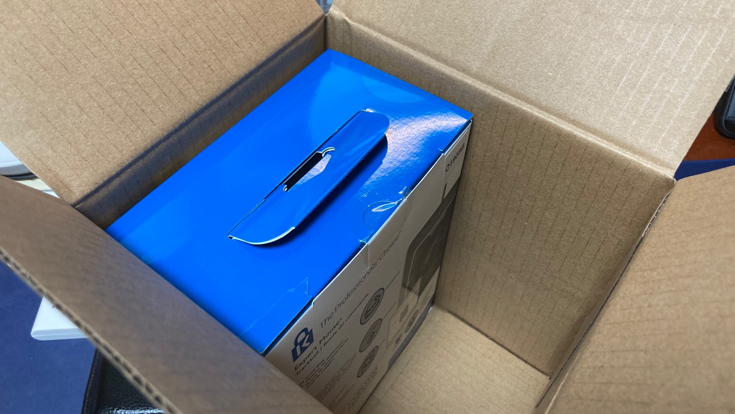 트랙볼을 먼저 꺼냈다. 매 우 크 다!!! 옆에 살짝 보이는 MX Master 2가 보이는가? 같은 거리는 아니지만 매우 큰 사이즈를 가지고 있다. 버튼은 총 4종류지만, 일부 버튼들을 동시에 누르는 것으로 총 6개의 기능들을 자유롭게 매핑할 수 있다. 트랙볼 가운데에는 가로로 돌아가는 휠이 있는데, 이걸 돌려서 마우스 스크롤을 구현한다. 일반적인 마우스만 사용해 왔다면 매우 적응되지 않을 수 있는 부분이다.