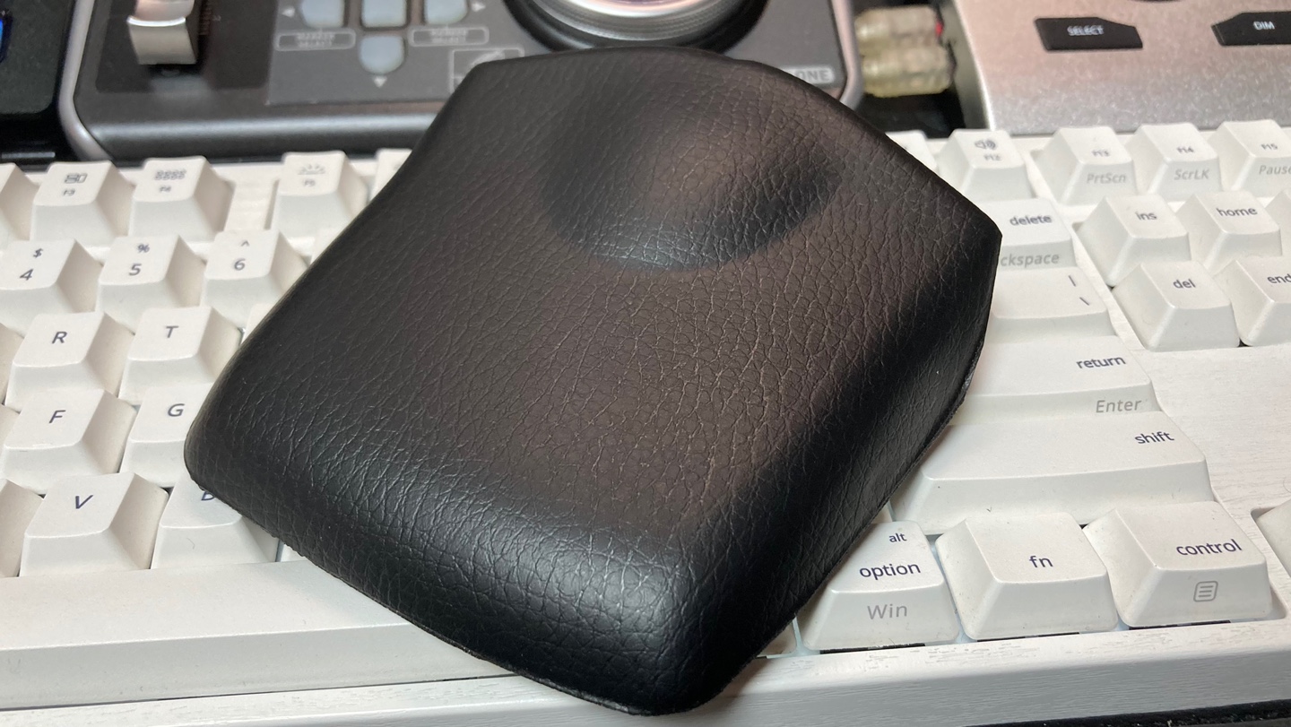 손목 받침대는 겉보기엔 가죽 마감처럼 보이지만 코팅된 우레탄 폼으로 이루어져 있다. 적당히 말랑말랑하면서 견고하게 이루어져 있다. 다만 마감은 깔끔하진 못한데, 손에 닿는 부분은 나름대로 준수한 마감을 가지고 있지만, 좌우측 모서리에는 성형 흔적이 남아 있다. 보다 깔끔하게 마감을 진행했다면 어땠을까 하는 생각이 든다.