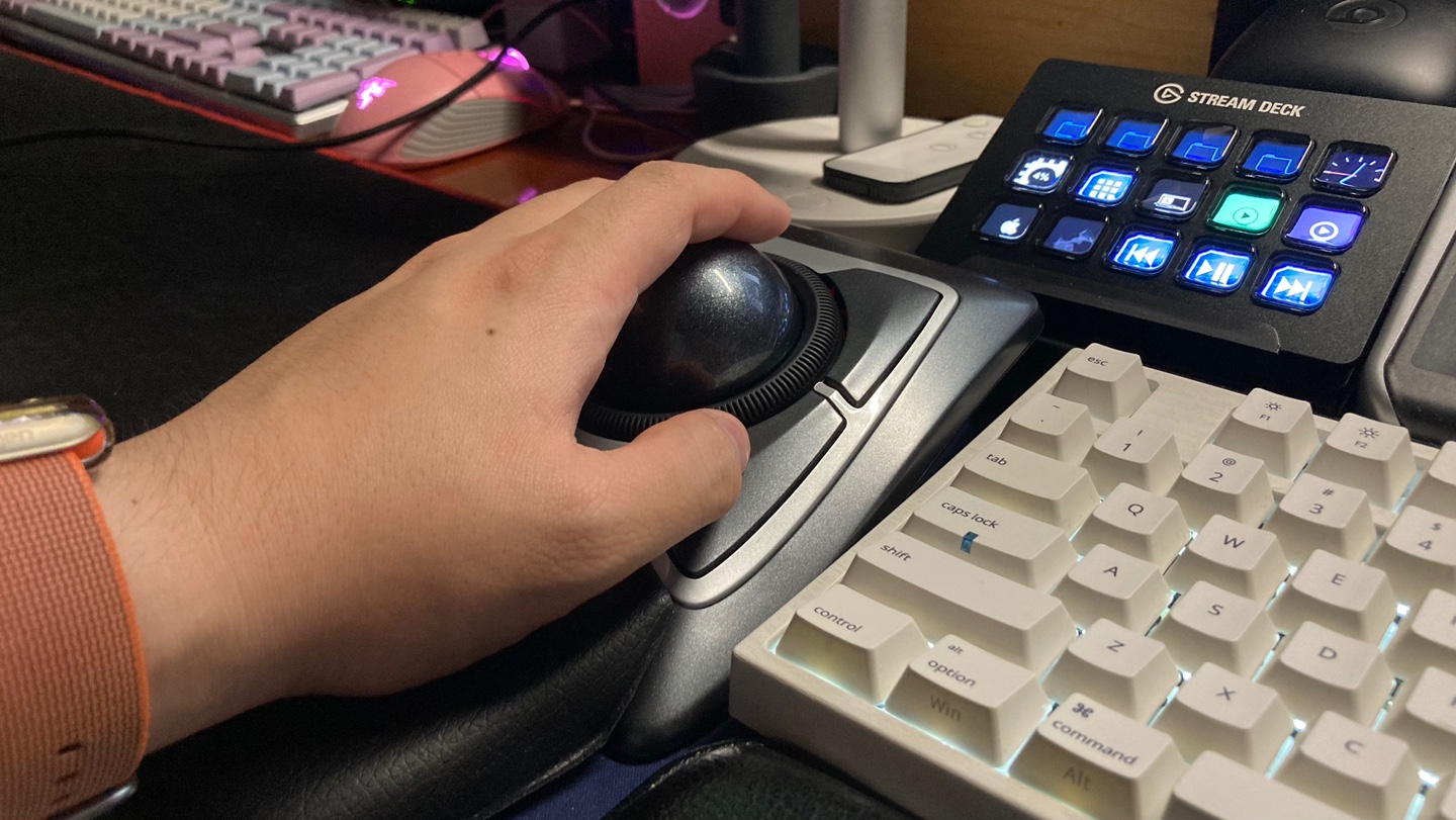 최종적으로 완성된 필자의 데스크 세팅이다. 이전에는 트랙볼 하나만 사용했지만, 이번엔 좌 트랙볼 / 우 마우스 조합으로 당분간 사용해보려 한다. 자주 쓰는 우측 손목의 부담을 최대한 줄이기 위해 왼손으로 조작을 하는, 이른바 양손잡이 조작법이다. 덤으로 되게 우주선의 조작부 같은 모습이 되었다. 필자가 자주 쓰는 장비들이 가뜩이나 버튼들이 많은데, 비슷한 사이즈의 트랙볼 마우스가 바로 옆에 붙어 있으니 더더욱 그런 느낌이 든다.