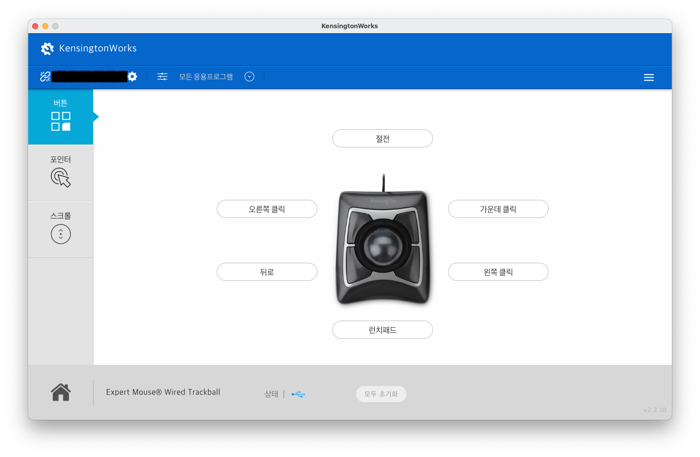 켄싱턴의 모든 마우스는 하나의 통합된 관리 프로그램으로 작동된다. KensingtonWorks라 불리는 관리 프로그램은 켄싱턴 마우스에 한해 버튼 매핑, 매크로 설정, 포인터 속도 조절 등 마우스와 관련된 모든 커스터마이즈를 제공한다. Logitech 사의 Logi Option과 같은 프로그램이라고 보면 편하다. TrackballWorks라는 프로그램도 존재하지만, 최근엔 KensingtonWorks로 통합되었다. 만일 TrackballWorks를 사용하고 있는 분이라면 최신 프로그램으로 업그레이드하는 걸 추천한다. 다운로드는 이곳에서 할 수 있다.