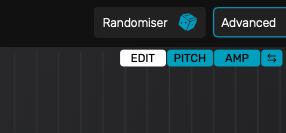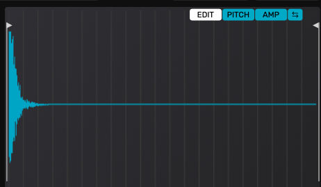 바로 우측에는 현재 선택한 스네어 샘플의 파형이 표시된다. 여기서 우측 상단의 에딧, 피치, 앰프, 리버스 기능으로 추가적인 샘플 편집이 가능하다. 예를 들어 스네어의 릴리즈 피치가 올라가면서 소리도 커지게 하고 싶으면 피치를 선택하고 테일 부분만 피치를 업한 후, 앰프에서 테일 부분만 부스트 할 수 있다. 그냥 파라매트릭 EQ 조작하듯이 굉장히 편하게 할 수 있다.