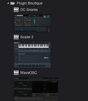 Plugin Boutique DC Snares를 설치한 후, DAW를 실행하면, 다음과 같이 정상적으로 플러그인이 설치된 걸 확인할 수 있다. Plugin Boutique DC Snares는 VST3, AU, AAX 등을 지원해 대다수의 DAW에서 정상적으로 실행할 수 있다. 필자의 경우 VST3을 선호하기 때문에, 다른 것들은 전부 숨김 처리하고 사용하고 있다.