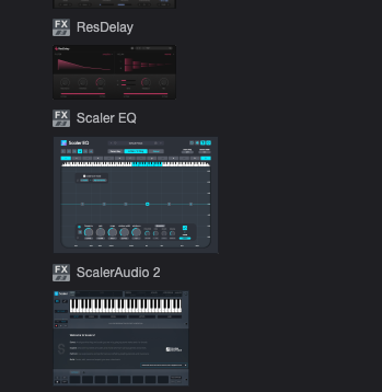PluginBoutique Scaler EQ를 설치한 후, DAW를 실행하면, 다음과 같이 정상적으로 플러그인이 설치된 걸 확인할 수 있다. PluginBoutique Scaler EQ는 VST3, AU, AAX 등을 지원해 대다수의 DAW에서 정상적으로 실행할 수 있다. 필자의 경우 VST3을 선호하기 때문에, 다른 것들은 전부 숨김 처리하고 사용하고 있다.