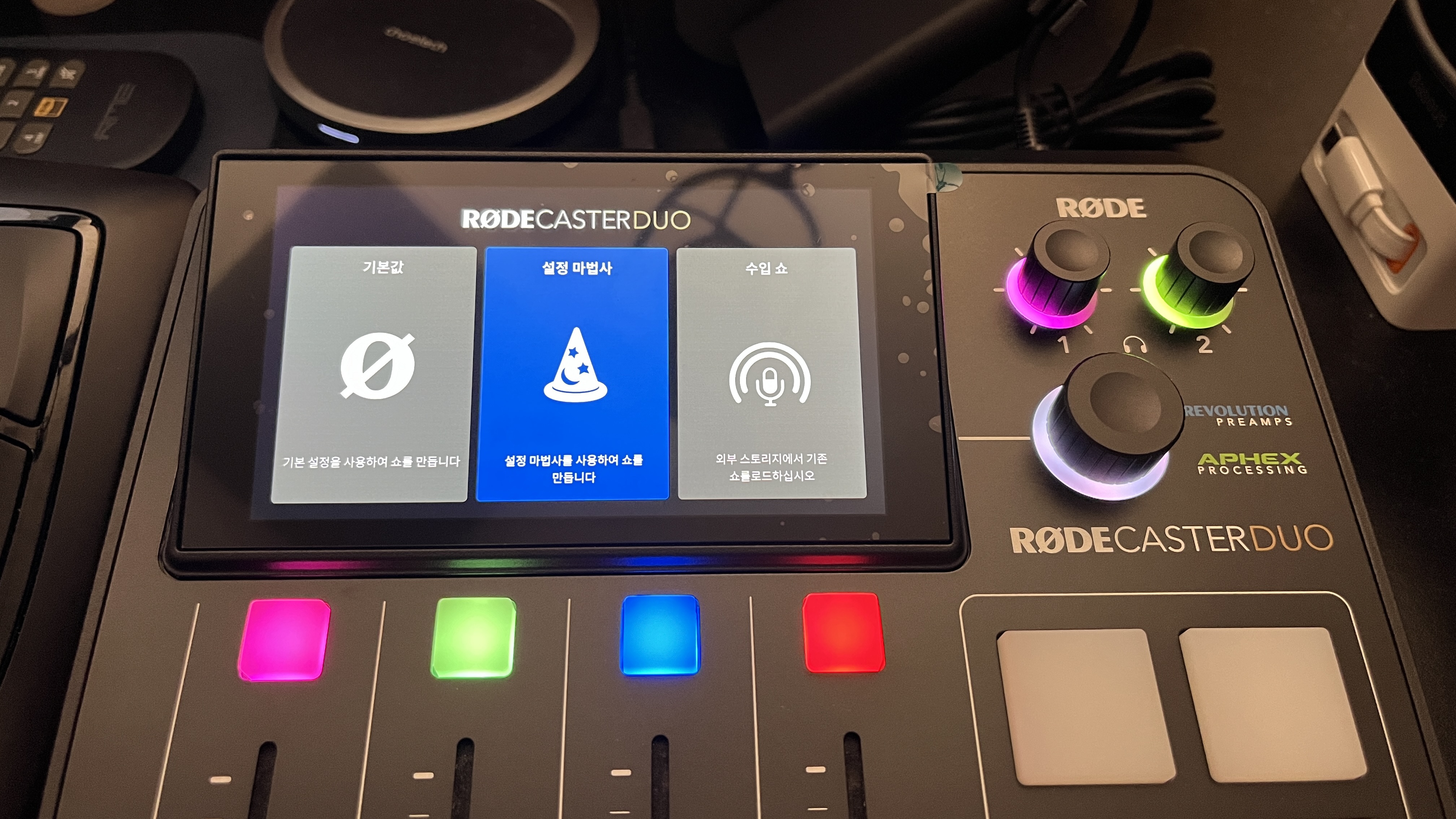 "설정 마법사"에 대해 궁금하신 분들을 위해 아래의 접은 글을 준비했다. 사진은 RøDECaster Pro II의 것을 사용했다. 이 점은 미리 양해를 구한다. 사용하면서 알아차린 건데, RøDECaster Pro II와 RøDECaster Duo의 소프트웨어가 거의 동일하다. RøDECaster Duo는 RøDECaster Pro II의 간소화 버전이 맞나 보다.